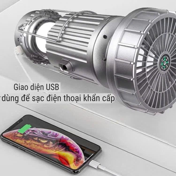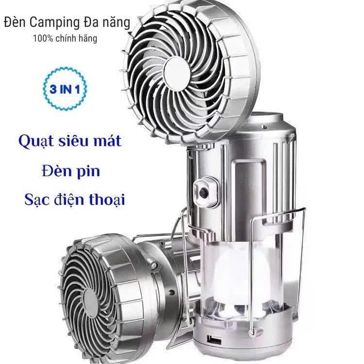 Đèn Pin Camping 3 in 1, Đèn Bão Du Lịch Sạc Năng Lượng Mặt Trời Có Quạt Kiêm Sạc Dự Phòng