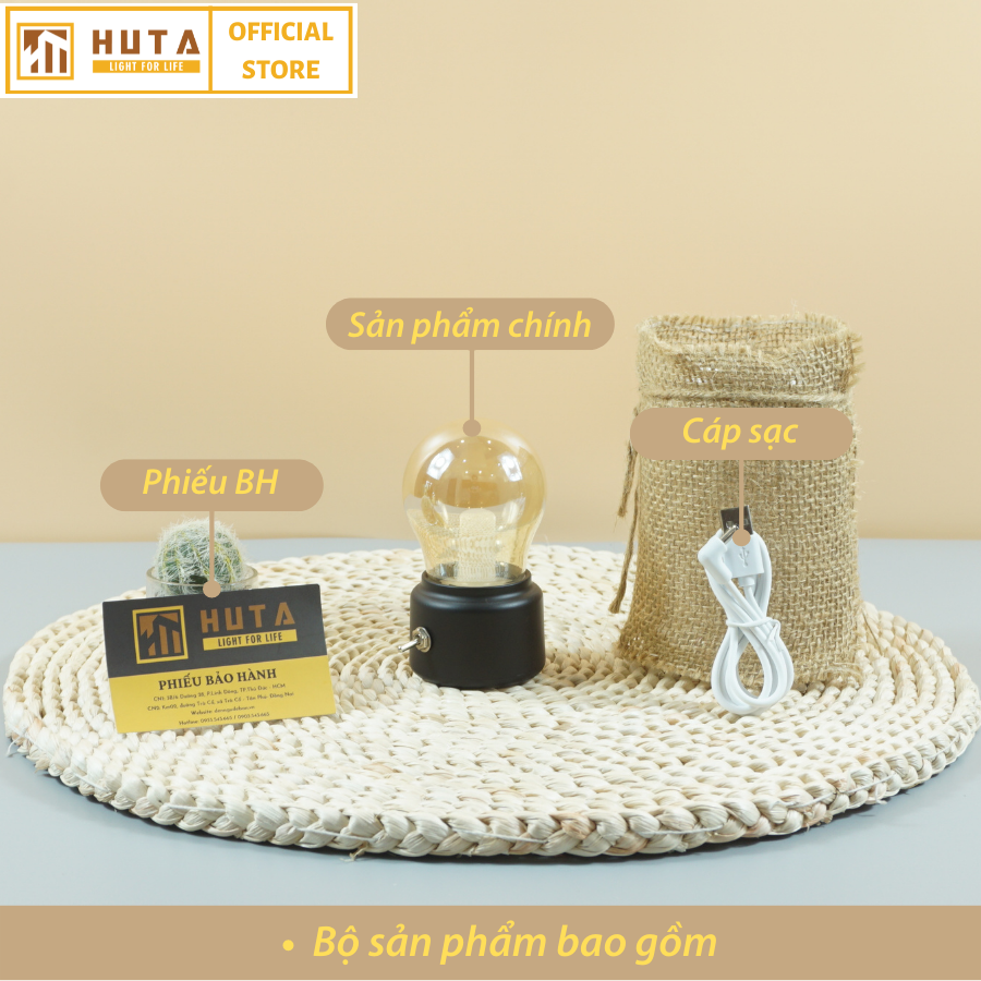 ✨Đèn Ngủ Mini HUTA MN1 Sạc Pin Tích Điện Sáng 25h Cute Dễ Thương, Decor Trang Trí Quán Cà Phê, Nhà Hàng, Để Bàn, Bóng Led Sáng Vàng Tiết Kiệm Điện