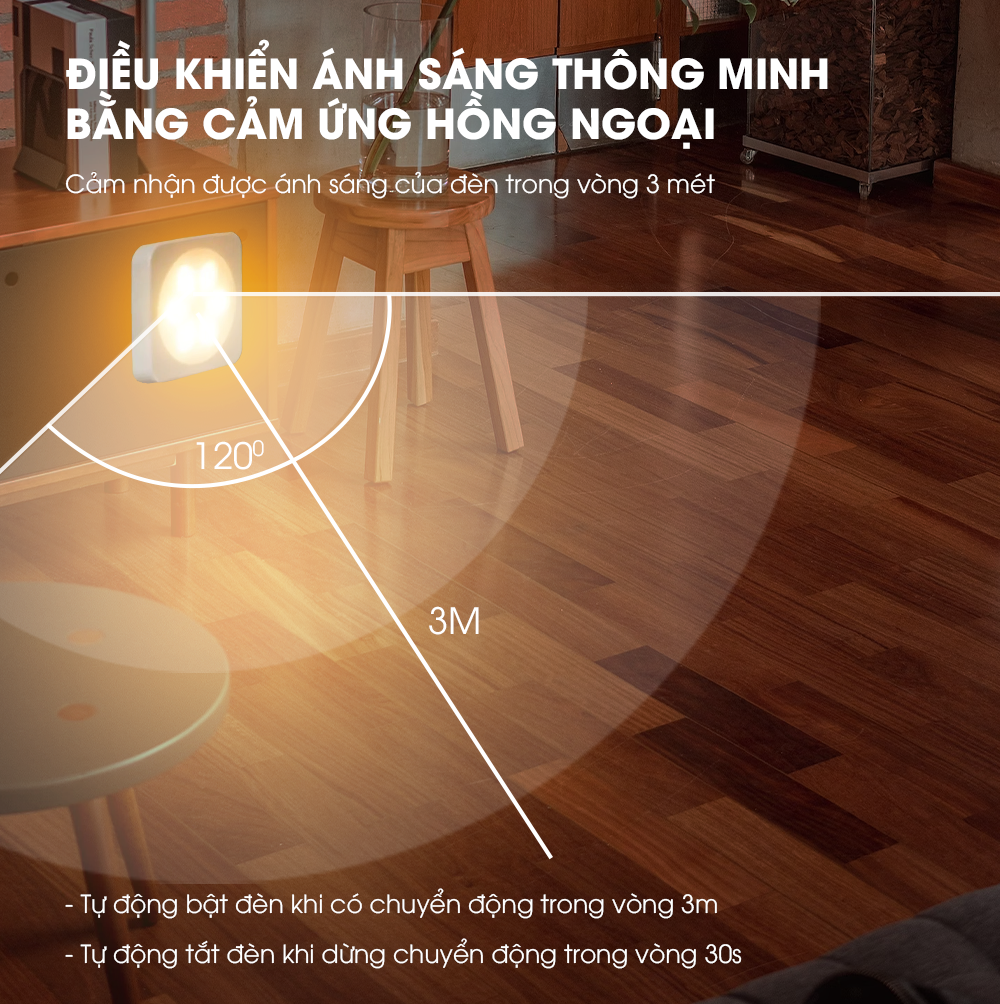 Đèn ngủ cảm biến ánh sáng - chỉ sáng khi phòng tối và tự tắt khi phòng sáng nên cực tiện lợi và tiết kiệm điện Trời càng tối đèn càng sáng Hãy để phòng