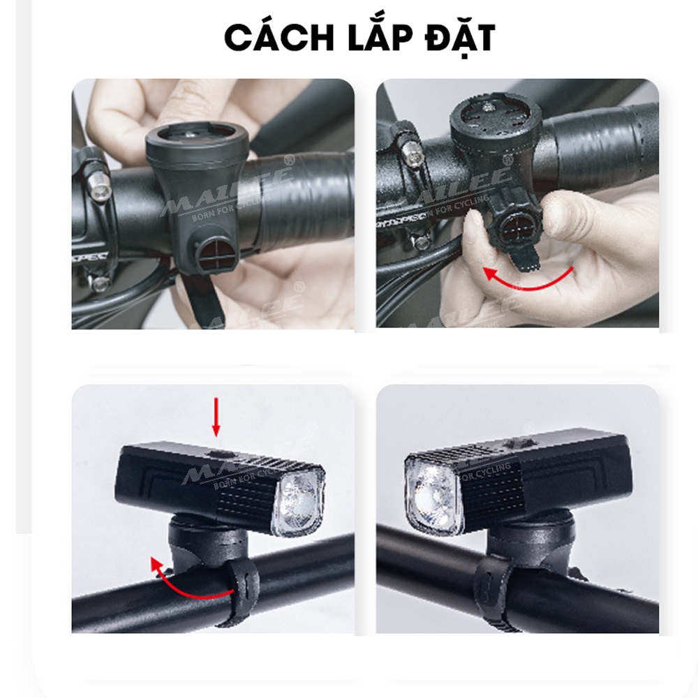 Đèn Xe Đạp BC-10 dung lượng 2600mAh 2 bóng, có hiển thị thời gian còn lại sử dụng, sạc Type-C, Có Hỗ trợ Sạc Khẩn Cấp - Mai Lee Mẫu sản phẩm: Đèn trước xe