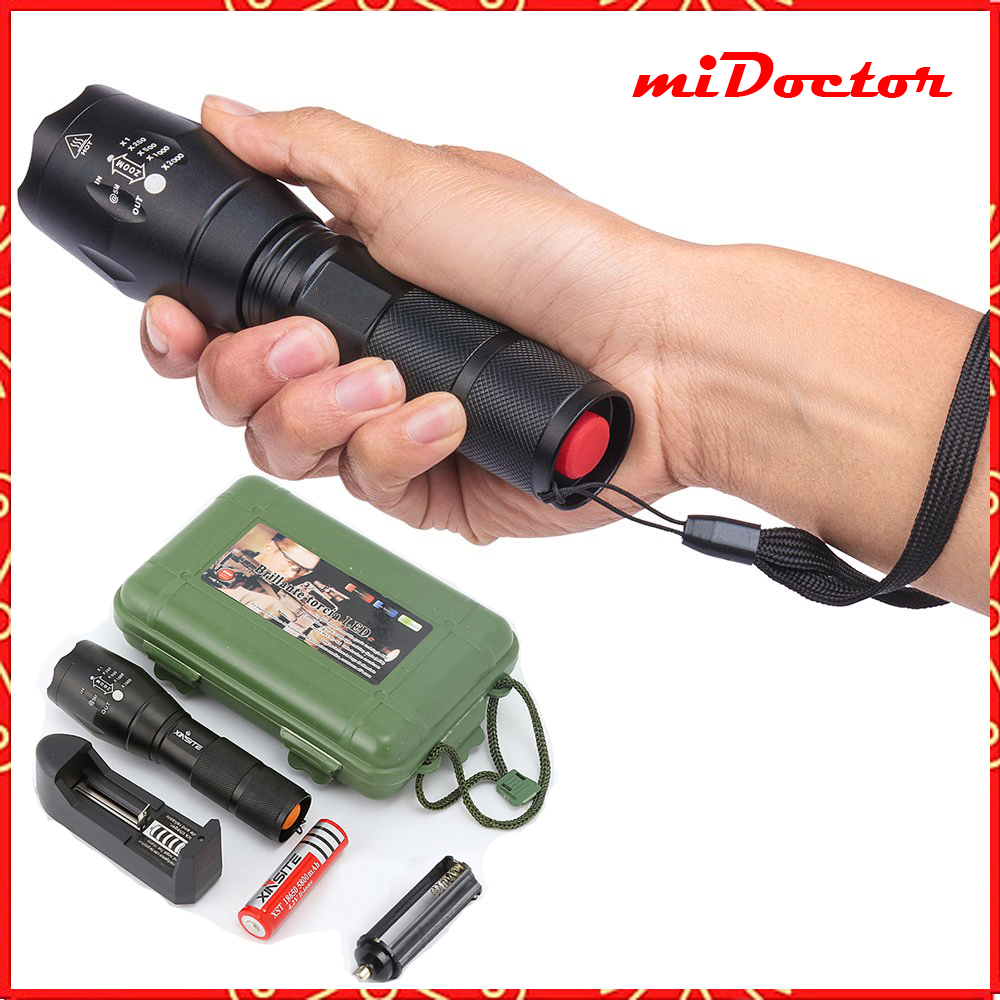 Đèn Pin Mini Siêu Sáng XML-T6 miDoctor có khả năng chịu nước phù hợp đi mưa, dùng cho cứu hộ mưa bão.