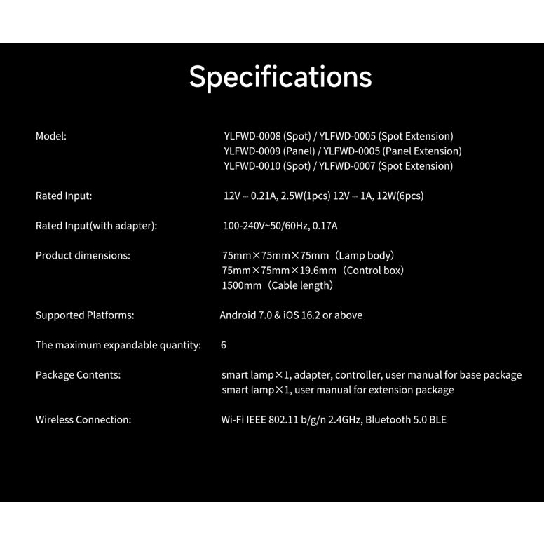 THÔNG SỐ KỸ THUẬT: • Số hiệu: YLCT03YL (Phiên bản Pro) • Điện áp đầu vào: AC100-240V 50-60Hz 0.35A • Điện áp đầu ra: 14W Max • Công suất: 18W • Chỉ số hoàn