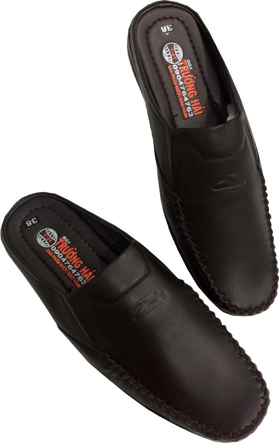 Dép bít mũi màu nâu Trường Hải da bò thật