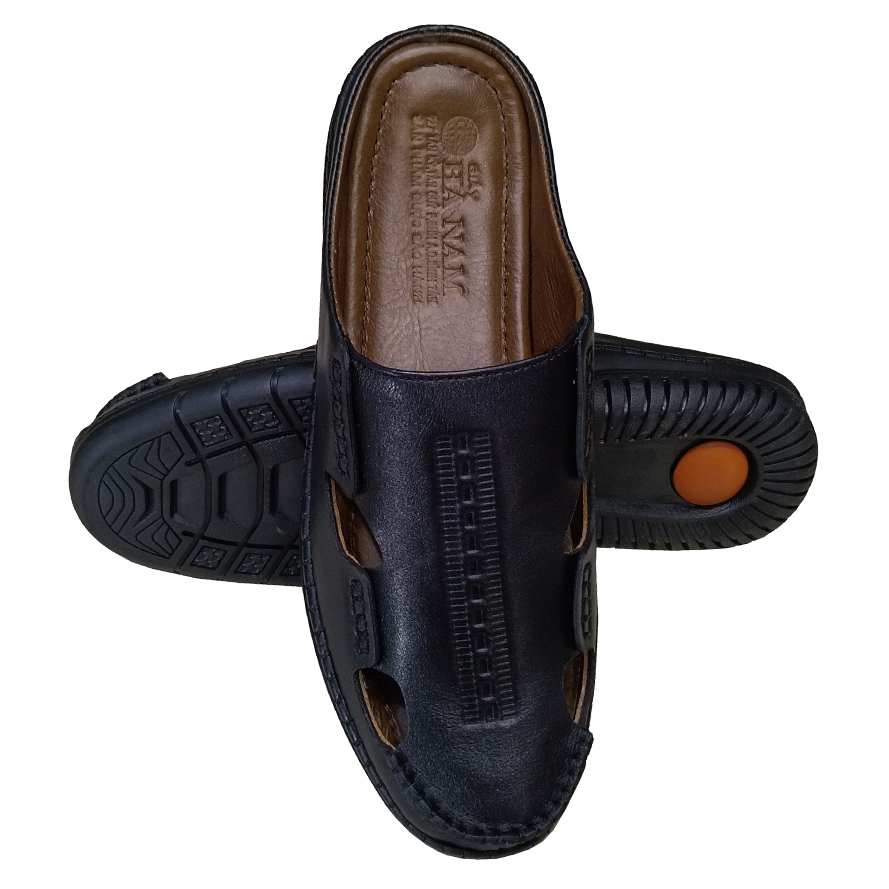 Dép Da Nam  - Lịch Lãm & Thoải Mái Mỗi Ngày - Chất liệu cao cấp: Sử dụng da tổng hợp chất lượng, mềm mại, bền bỉ theo thời gian, mang lại cảm giác êm ái và thoáng khí cho bàn chân. - Thiết kế sang trọng: Tông màu đen lịch lãm, kết hợp với đường chỉ may tinh tế và logo kim loại nổi bật – tôn lên vẻ nam tính, trưởng thành. - Đế chống trượt: Đế EVA siêu nhẹ, độ đàn hồi tốt, kết hợp vân đế tăng độ ma sát – an toàn khi di chuyển trên nhiều bề mặt. - Form ôm chân: Thiết kế bản quai ngang rộng, ôm gọn bàn chân nhưng không gây bí bách, dễ xỏ vào – thích hợp cho người trung niên và người lớn tuổi. - Ứng dụng đa năng: Phù hợp sử dụng trong nhà, đi dạo phố, đến văn phòng hoặc các dịp gặp gỡ thân mật. Lựa chọn tuyệt vời cho quý ông yêu thích sự thoải mái, đơn giản nhưng vẫn giữ được nét tinh tế trong từng bước chân.