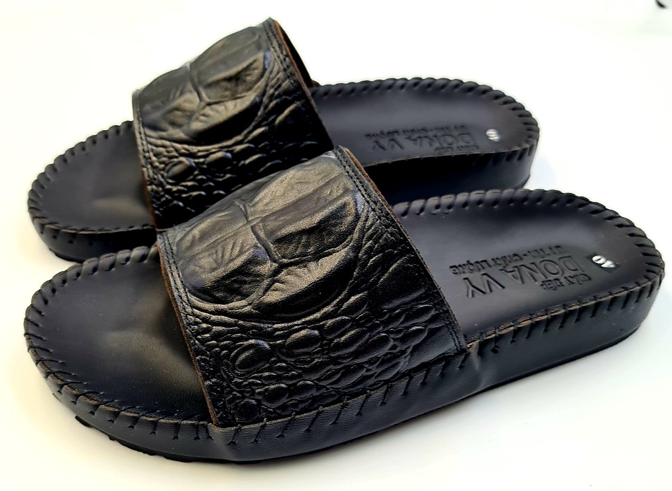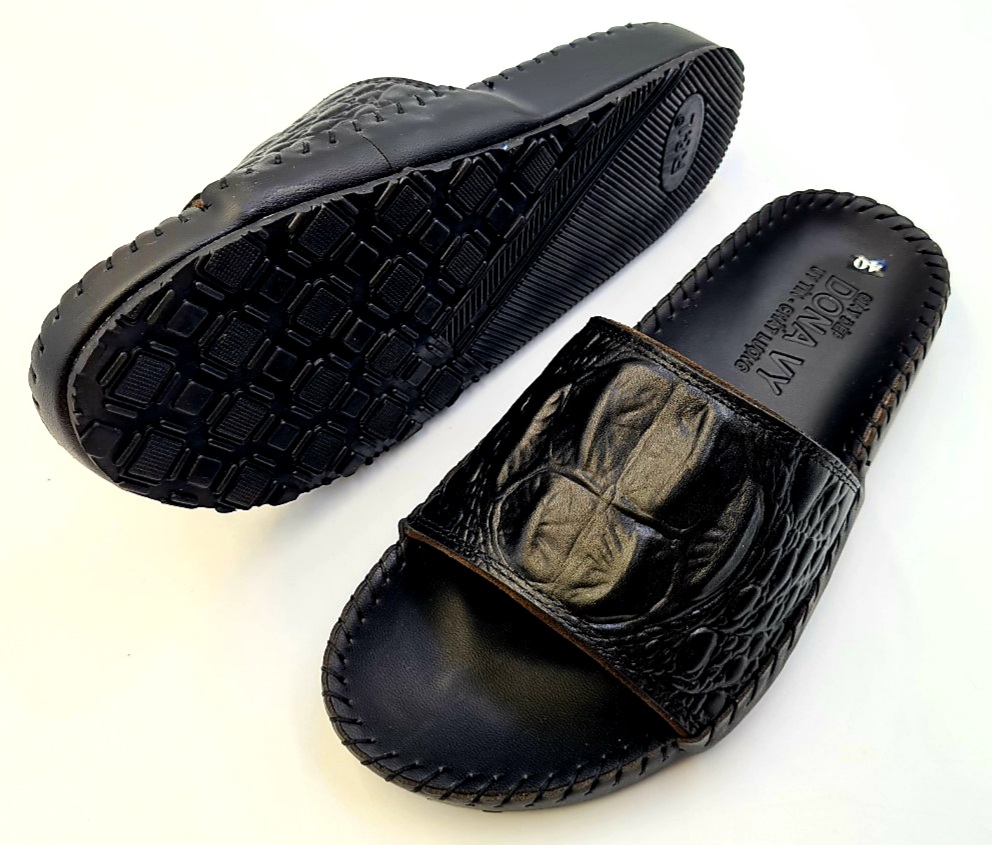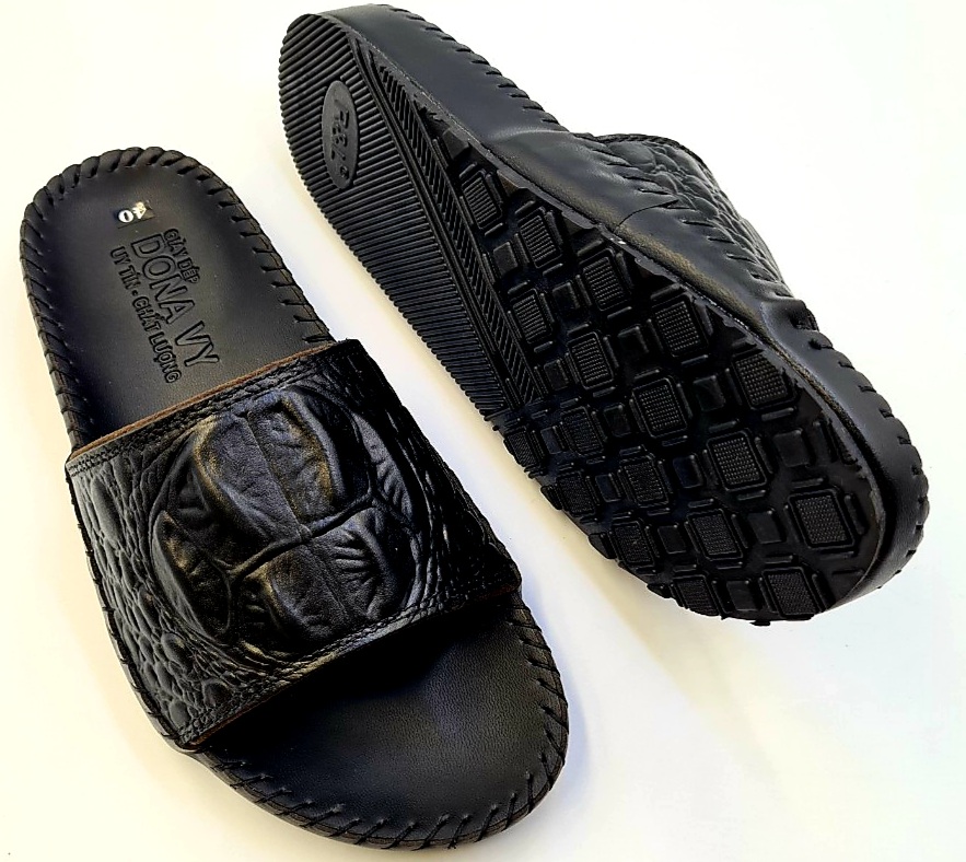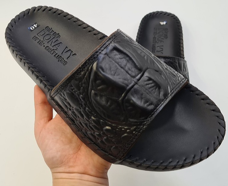 - Dép nam Huy Hoàng được làm từ chất liệu da cá sấu cao cấp nên càng sử dụng lâu bề mặt sẽ càng bóng đẹp tự nhiên. Da cá sấu mềm mại sẽ hạn