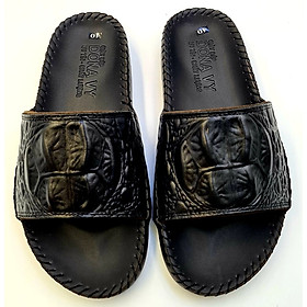 DÉP NAM BA QUAI DA BÒ,QUAI CÓ GẮN KHUY ĐẸP MẮT Dép quai ngang cá sấu da bò 100% Chất liệu: Da bò thật thật 100% da bò tự nhiên Đế cao su tốt đi