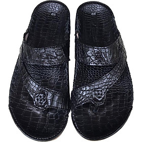 Dép nam da cá sấu màu đen 2 quai ngang may viền chắc chắn