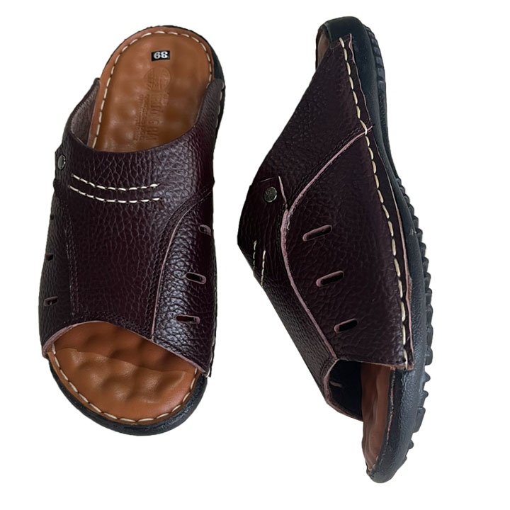 Dép Nam Quai Ngang Da Bò Bản Lớn Màu Nâu Trường Hải DN046
