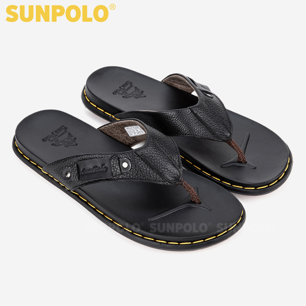 ✨Dép Kẹp Xỏ Ngón Nam Da Bò SUNPOLO KEP204 Êm nhẹ (Đen)
