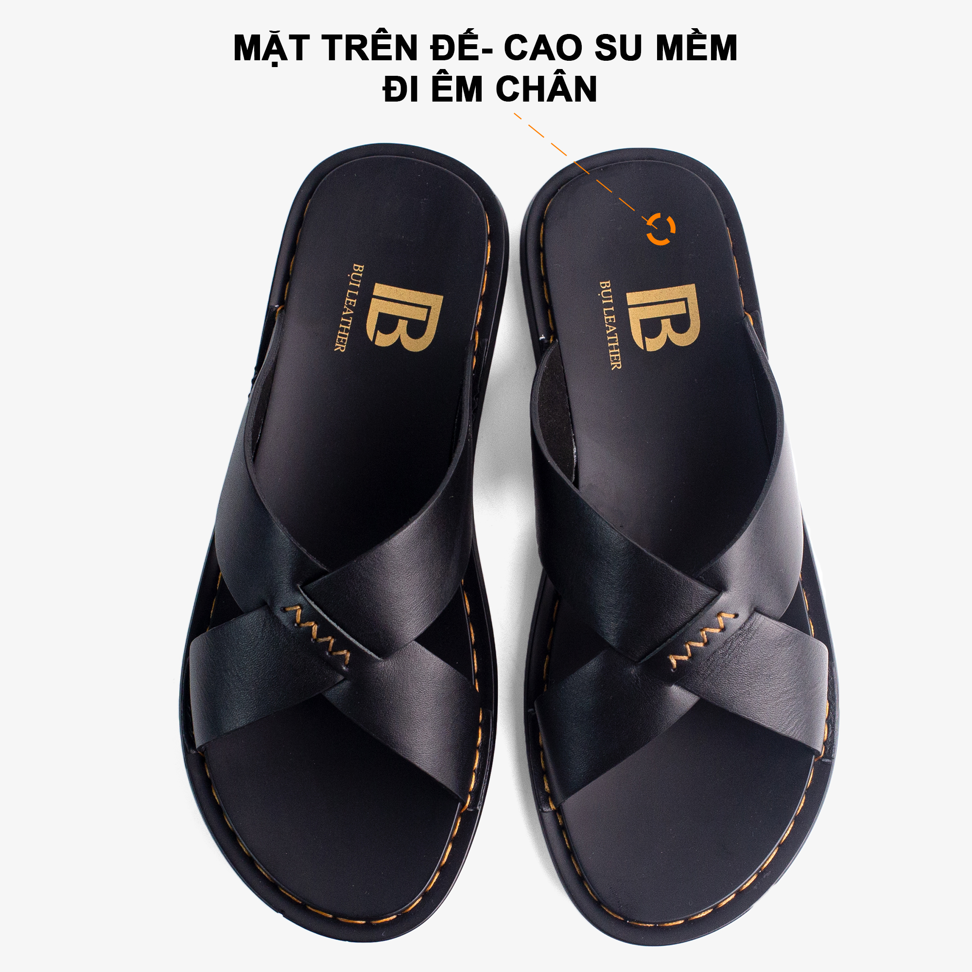 ✨Dép nam quai ngang da bò Nappa cao cấp Bụi Leather E103, đế đúc nguyên khối khâu viền thủ công đi êm chân, Bảo hành 12 Tháng