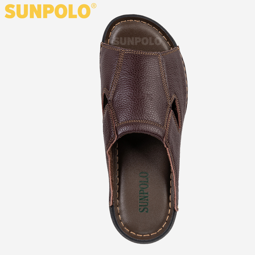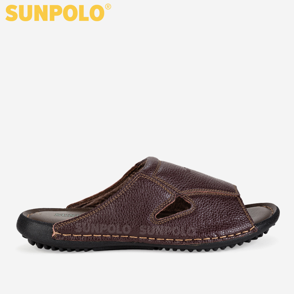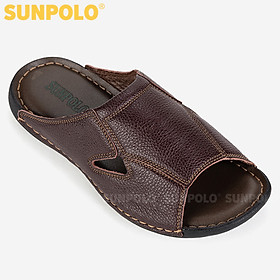 ✨Dép Nam Quai Ngang Da Bò SUNPOLO SUD20N - Nâu