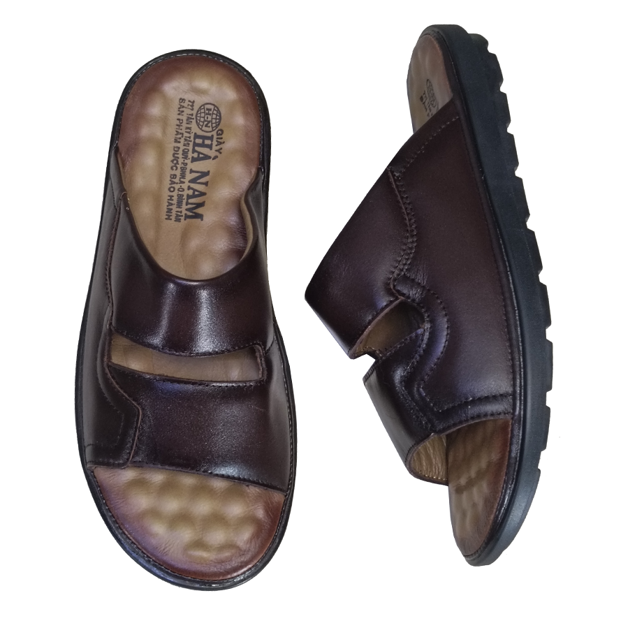 DÉP NAM DA BÒ CAO CẤP - THƯƠNG HIỆU HÀ NAM - Da bò thật, bền đẹp: Dép nam được làm từ 100% da bò thật, mềm mại, thoáng khí, đảm bảo độ bền cao