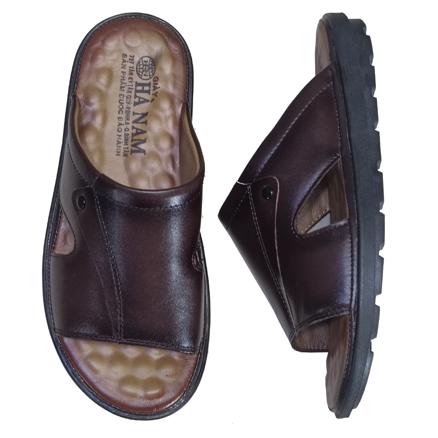 DÉP NAM DA BÒ CAO CẤP - THƯƠNG HIỆU HÀ NAM - Da bò thật, bền đẹp: Dép nam được làm từ 100% da bò thật, mềm mại, thoáng khí, đảm bảo độ bền cao