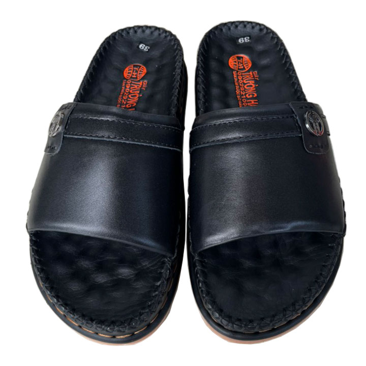 ✨Dép nam quai ngang một bản cao 3.5cm chính hãng Trường Hải da bò thật màu đen QN178