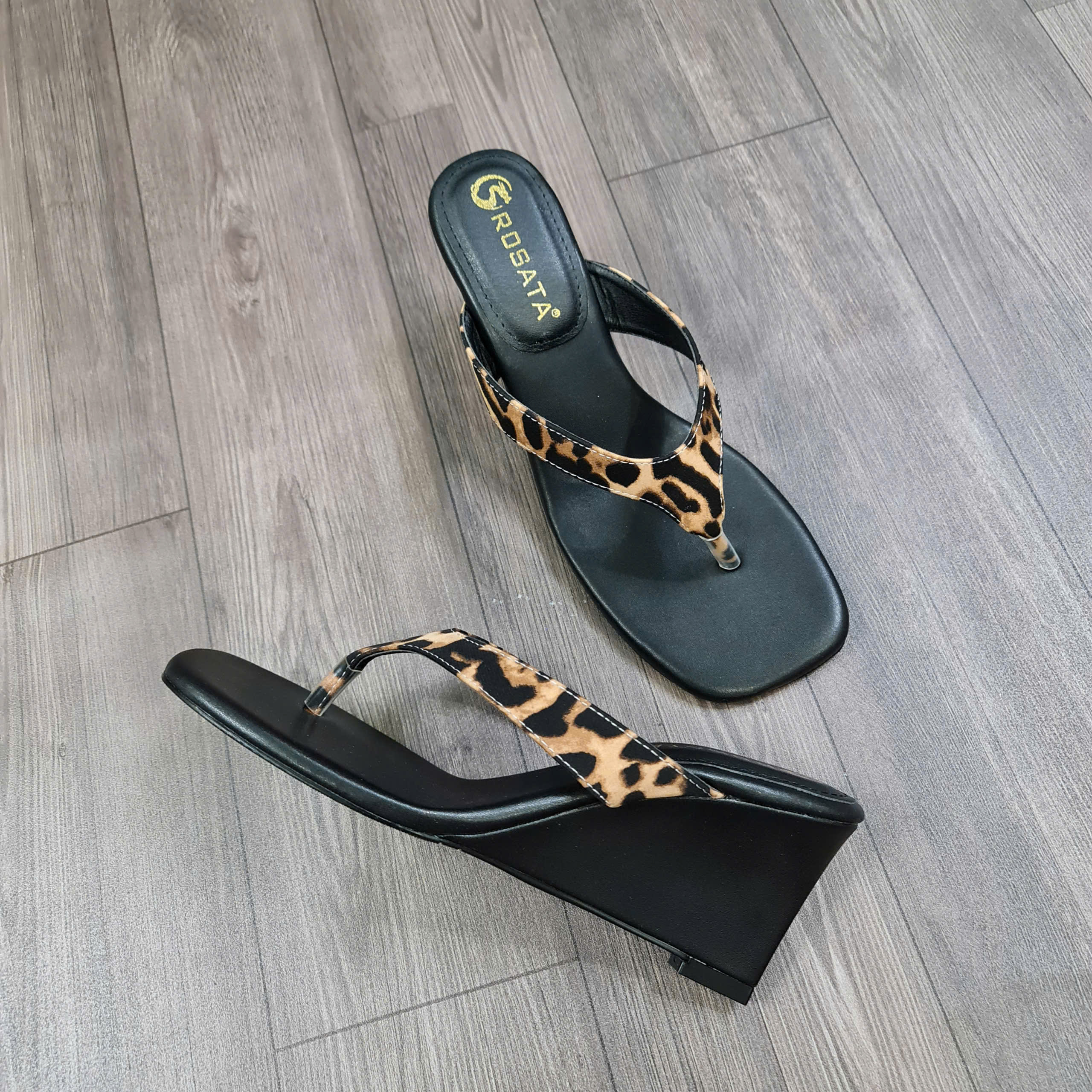 MÔ TẢ SẢN PHẨM: Dép nữ xỏ ngón, quai xuôi, đế xuồng ROSATA RO737 - 7p - Đen - BKSTORE