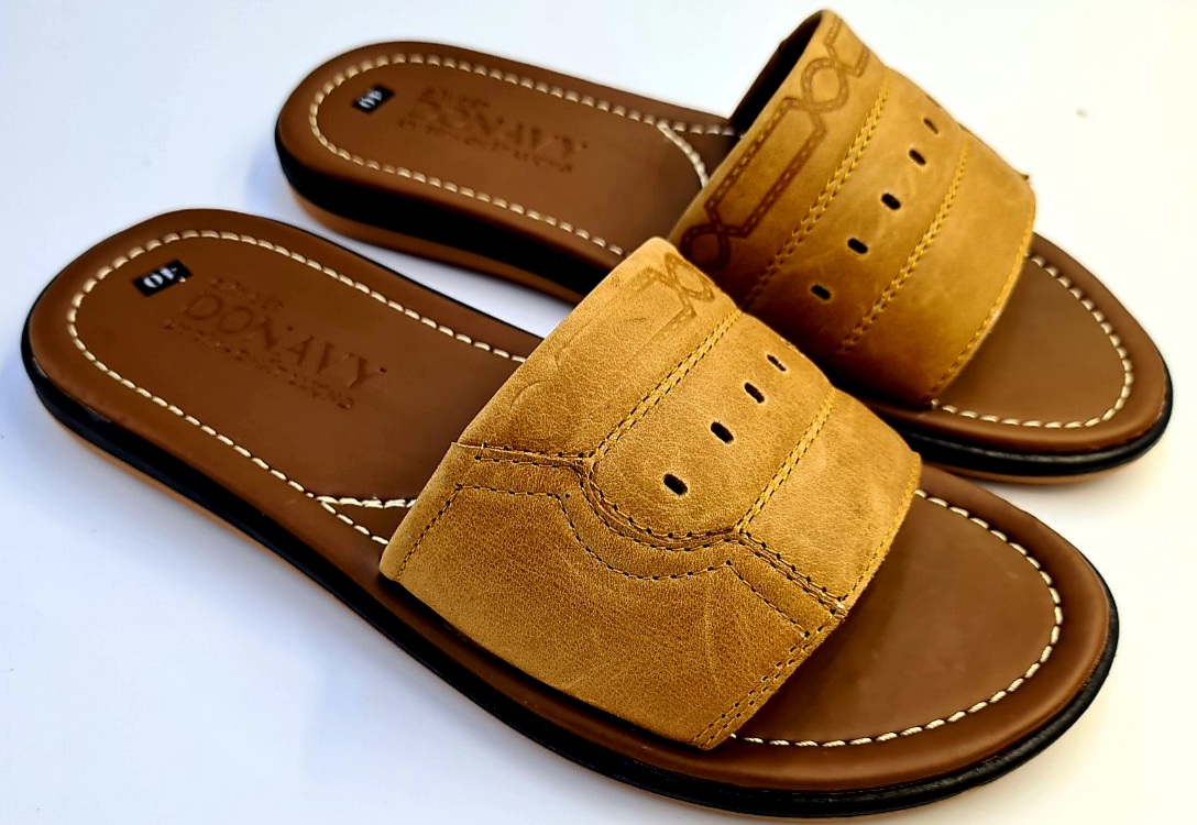 Dép quai ngang nam da bò 100%, quai 02 lớp da Bò Donavy cao cấp may full quai và đế rất chắc chắn DONAVY1MC Chất liệu: Da bò thật 100% da bò tự nhiên Đế cao su tốt đi siêu êm, chống chơn, trượt. Da được may vào đế cẩn thận, đẹp bao đi nước Hàng đảm bảo giống hình