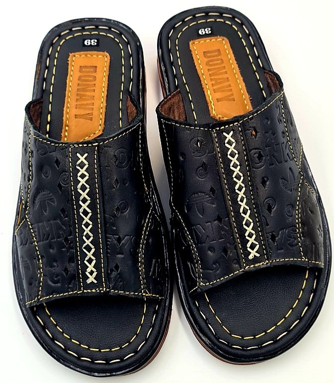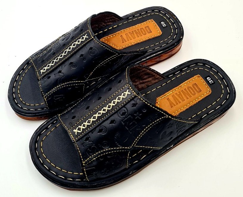 Dép Da Nam  - Lịch Lãm & Thoải Mái Mỗi Ngày - Chất liệu cao cấp: Sử dụng da tổng hợp chất lượng, mềm mại, bền bỉ theo thời gian, mang lại cảm giác êm ái và thoáng khí cho bàn chân. - Thiết kế sang trọng: Tông màu đen lịch lãm, kết hợp với đường chỉ may tinh tế và logo kim loại nổi bật – tôn lên vẻ nam tính, trưởng thành. - Đế chống trượt: Đế EVA siêu nhẹ, độ đàn hồi tốt, kết hợp vân đế tăng độ ma sát – an toàn khi di chuyển trên nhiều bề mặt. - Form ôm chân: Thiết kế bản quai ngang rộng, ôm gọn bàn chân nhưng không gây bí bách, dễ xỏ vào – thích hợp cho người trung niên và người lớn tuổi. - Ứng dụng đa năng: Phù hợp sử dụng trong nhà, đi dạo phố, đến văn phòng hoặc các dịp gặp gỡ thân mật. Lựa chọn tuyệt vời cho quý ông yêu thích sự thoải mái, đơn giản nhưng vẫn giữ được nét tinh tế trong từng bước chân.