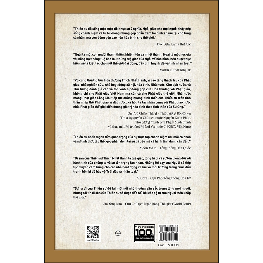 Không chỉ có những đóng góp to lớn trong lĩnh vực hướng dẫn thiện tập, Thiền sư Nhất Hạnh còn là một nhà hoạt động hòa bình với đường lối “bất bạo động”. Sinh thời, ngài từng được đề cử giải Nobel Hòa bình. Thiền sư là một bậc thầy khả kính, một nhà thơ, nhà văn với những tác phẩm mang lại rất nhiều lợi lạc cho người đọc. Gần trăm năm hiện hữu trên cuộc đời, Ngài dành trọn thời gian của mình để phụng sự nhân sinh và Đạo pháp.