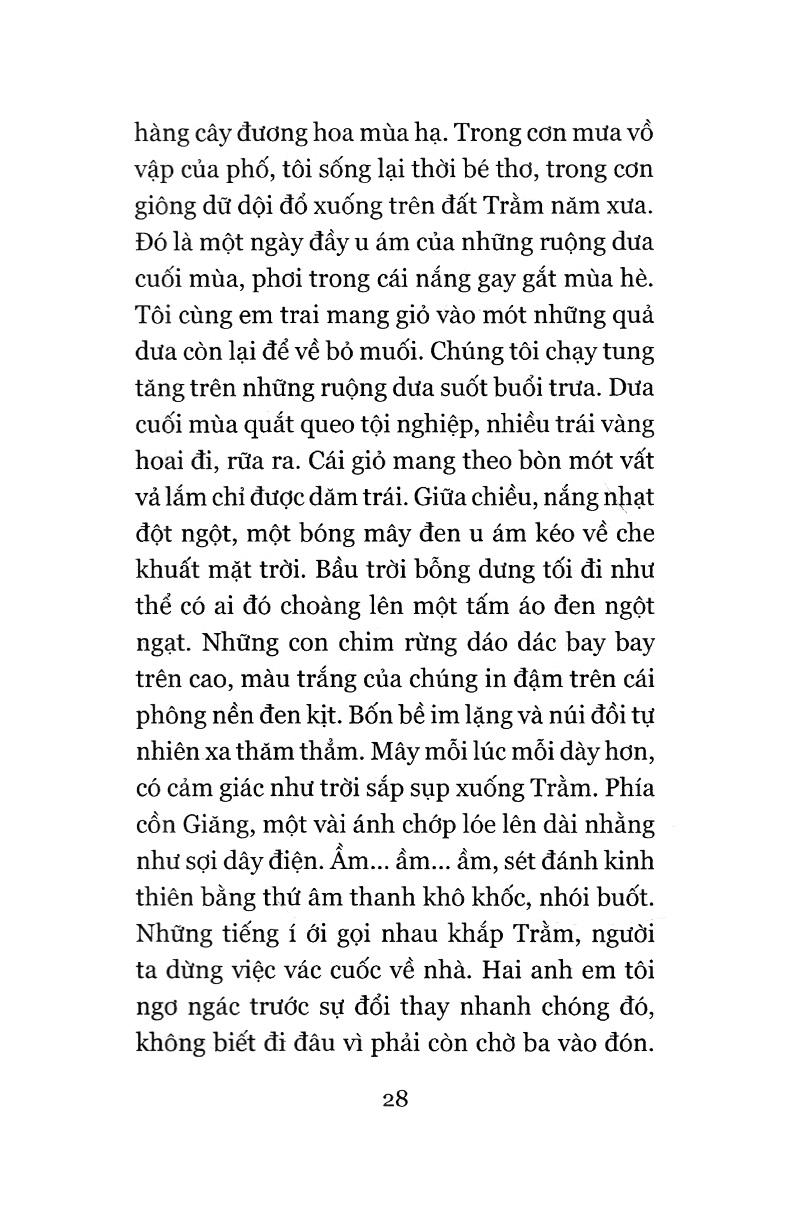 Tìm cách gợi lại những bóng hình của quá khứ, là việc không phải của riêng tôi, kẻ đã thất lạc mình giữa những xa vắng lung linh, mà là nỗ lực của tất cả những ai từng sống trọn vẹn trong dung ảnh xa xưa của một thời nào đó, đến không bao giờ nhòa xóa đi, không bao giờ quên lãng. Những dòng trên đây là cách duy nhất để tìm lại quãng thời gian đã tan chảy ấp chứa trong nó một vùng đất, cuộc sống đồng quê, những mảnh đời, những kỷ niệm lạc mất, những rung cảm chân thậ