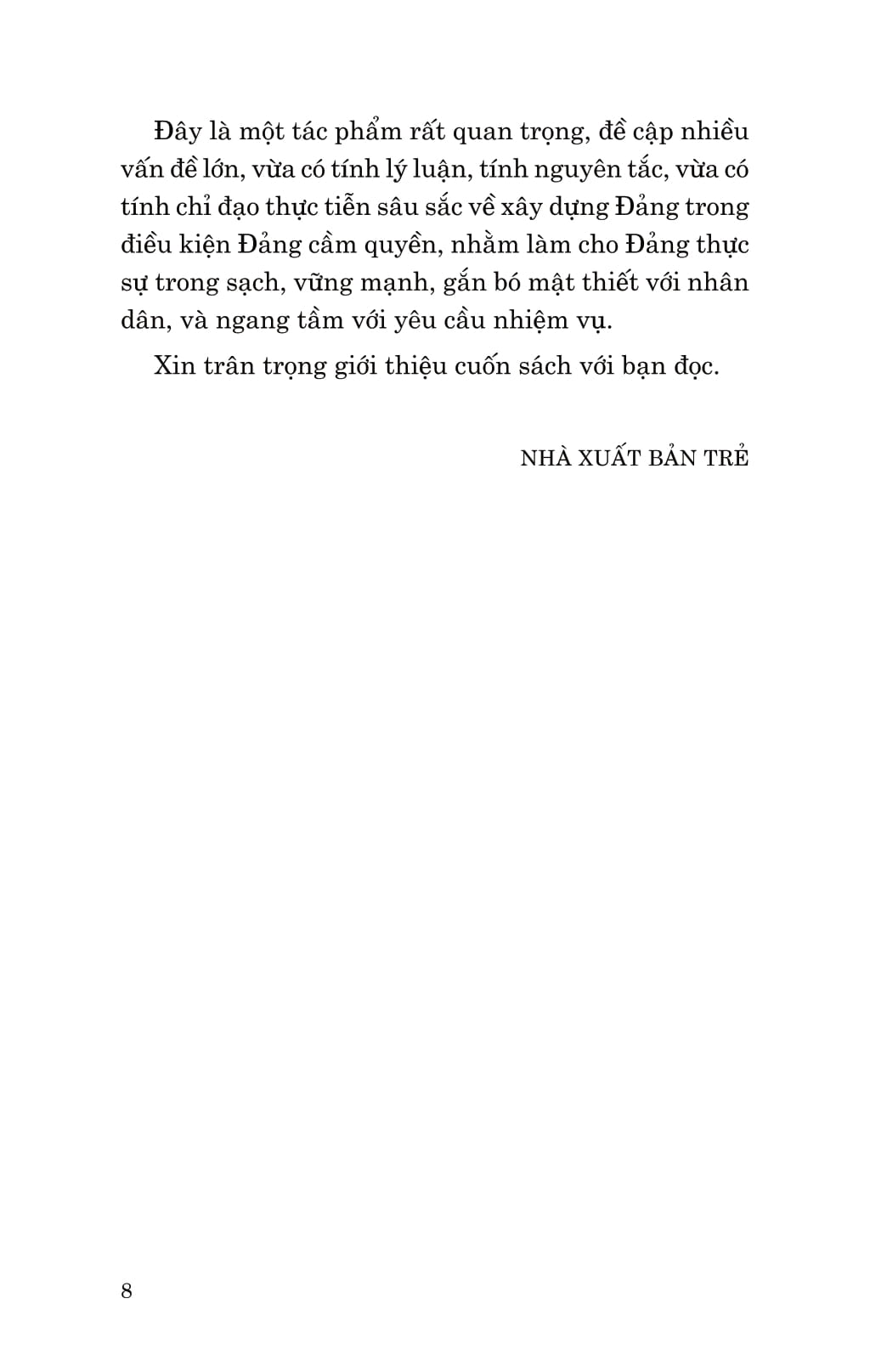 Đây là một tác phẩm rất quan trọng, đề cập nhiều vấn đề lớn, vừa có tính lý luận, tính nguyên tắc, vừa có tính chỉ đạo thực tiễn sâu sắc về xây dựng Đảng trong điều kiện Đảng cầm quyền, nhằm làm cho Đảng thực sự trong sạch, vững mạnh, gắn bó mật thiết với nhân dân, và ngang tầm với yêu cầu nhiệm vụ.