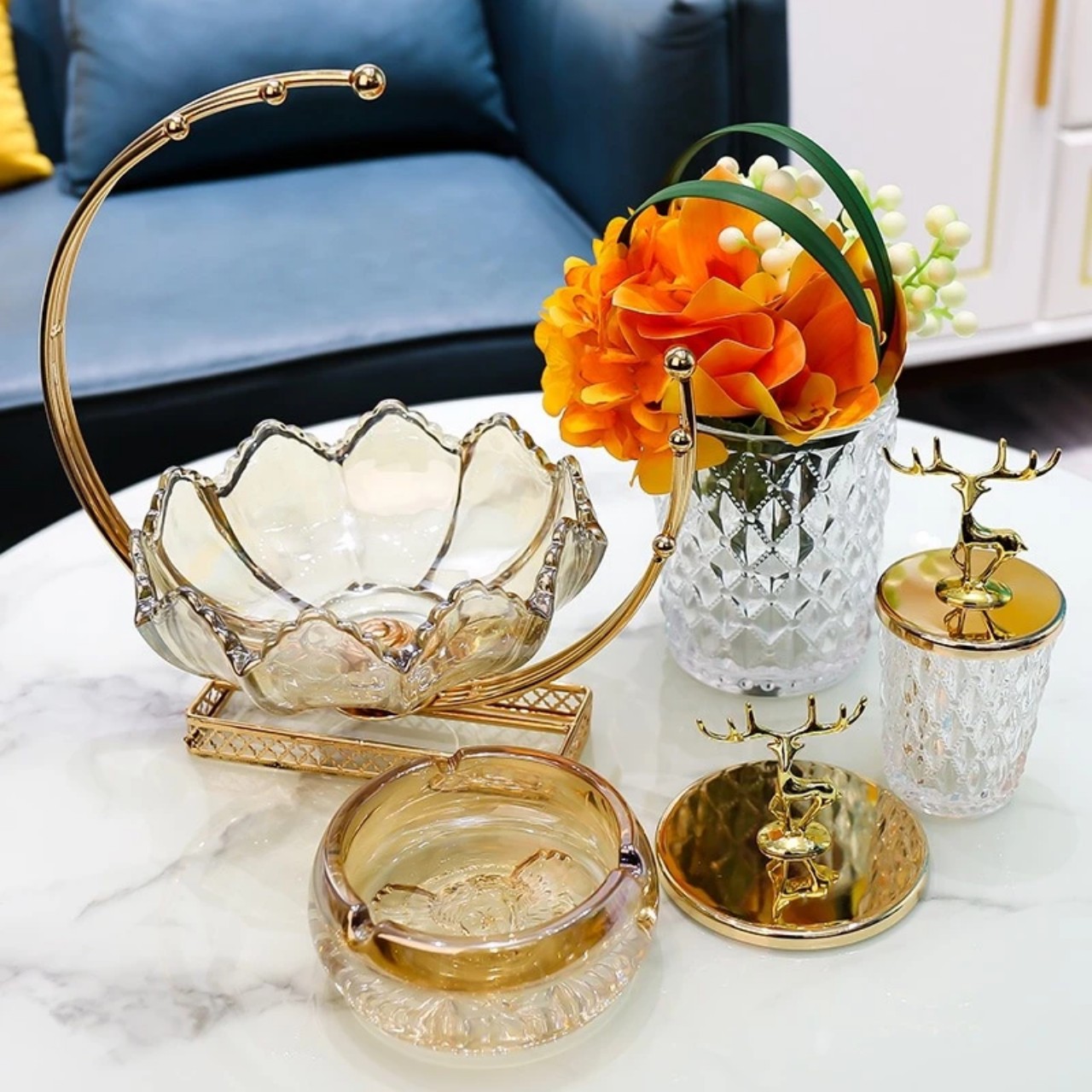 Đĩa Thuỷ Tinh Đựng Hoa Quả, Khay Thuỷ Tinh Pha Lê Đựng Hoa Quả Sang Trọng - KHAY MỨT Chân Bồng Pha Lê Mạ Vàng Phong Cách Royal Sang Trọng - HÀNG CHÍNH HÃNG MINIIN