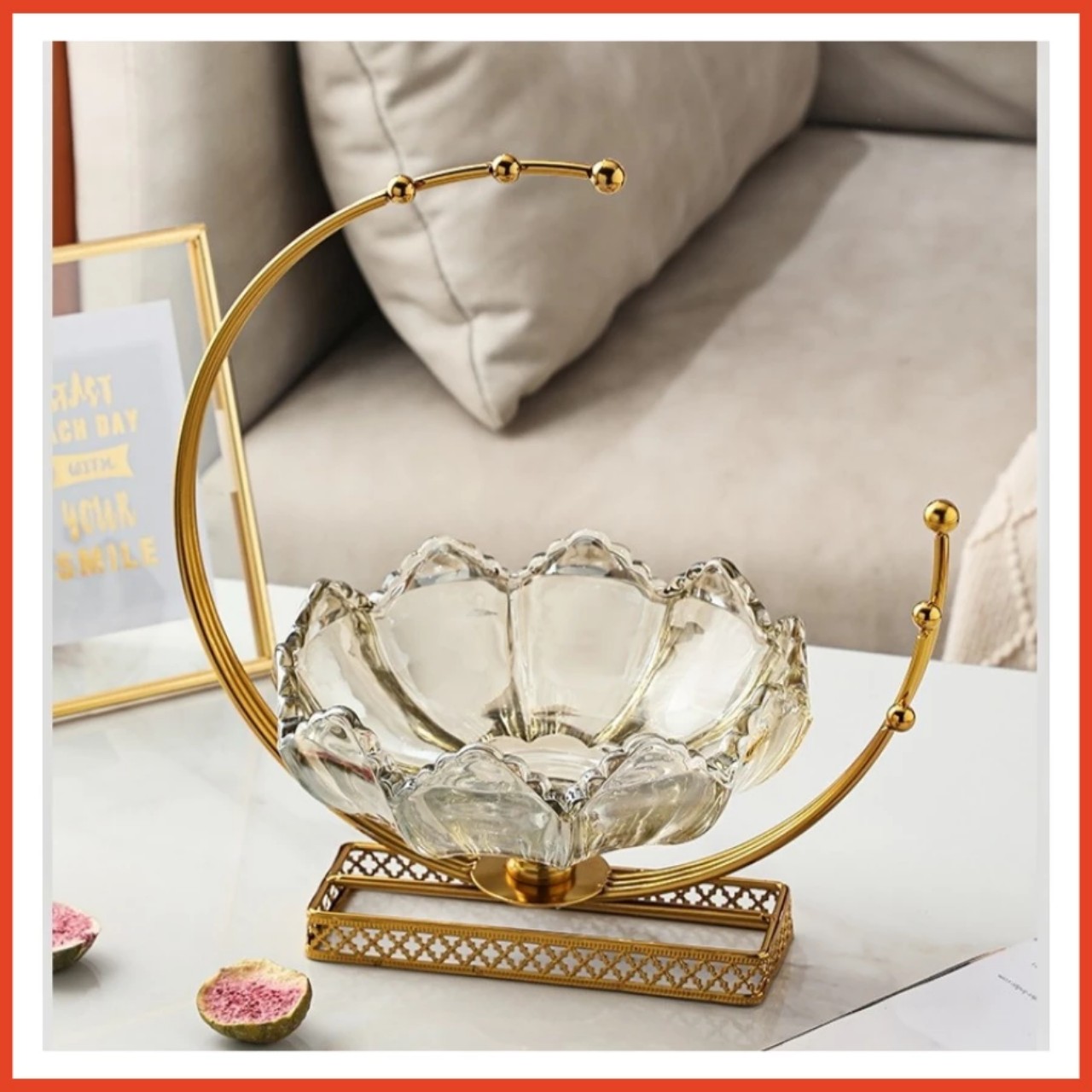Mua tại TiktokĐĩa Đựng Bánh Kẹo Hoa Quả Vầng Trăng Bằng Thủy Tinh Khung Mạ Vàng Sang Trọng Hàng Loại 1- Hàng Chính Hãng MINIIN