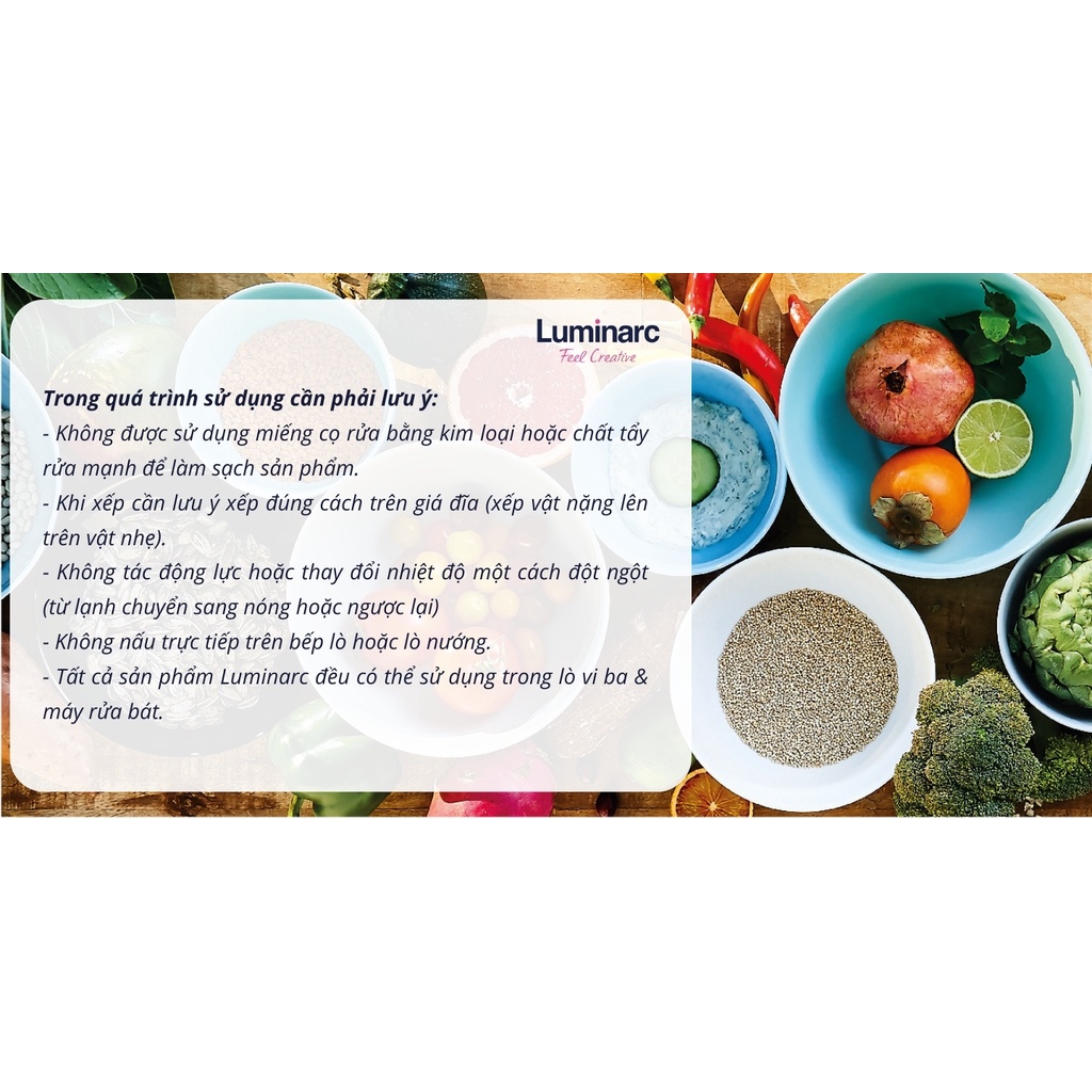 - Tất cả sản phẩm tô, chén, đĩa của L đều có thể sử dụng trong lò vi ba & máy rửa bát.