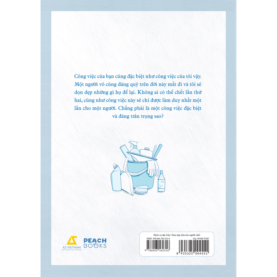 Mỗi một lần dọn dẹp một căn nhà đầy những di vật của người chết, đó là một lần đối diện với cái chết cô độc - đột nhiên biến mất và chỉ được phát hiện rất lâu sau khi qua đời. Đó là cái chết của một người phụ nữ lương thiện nhưng lựa chọn tự sát vì những uất ức và đau khổ chồng chất. Đó là một người đàn ông trước khi tự tử vẫn lo lắng cái chết của mình sẽ là gánh nặng cho những người thân yêu.  Hơn 200 trang sách đã khắc họa sự thật về những con người bị bỏ quên bởi chính những người mình yêu mến và công việc dọn dẹp đặc biệt mà không phải ai cũng làm được. Thậm chí, công việc này còn có thể gây hại tới sức khỏe cũng như tinh thần của người làm chúng. Đối diện trước những cái chết cô đơn, được an táng tại những ngôi mộ không tên vì chẳng có người thân nào nhớ đến họ có lẽ là khoảnh khắc buồn nhất thế gian này.