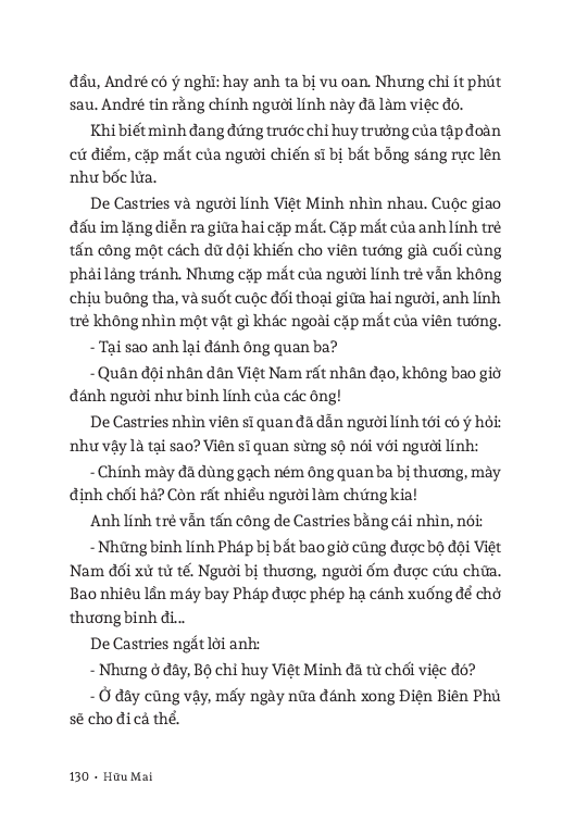 Trong tác phẩm này, thông qua lời kể và hướng dẫn tham quan của Đại tá Quý, người chiến sĩ đã từng vào hầm chỉ huy tướng de Castries và Thanh, cán bộ bảo tàng Điện Biên Phủ; nhà nghiên cứu sử học người Pháp André và nhà báo châu Phi Mohamed đã đi điền giả, tham quan chiến trường Điện Biên Phủ, nhờ đó mà họ hiểu thêm về nguyên nhân làm nên thắng lợi của Chiến thắng lừng lẫy năm châu, chấn động đ.ịa cầu của nhân dân Việt Nam.