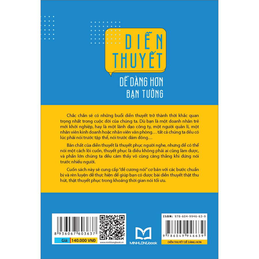 Cuốn sách “Diễn thuyết dễ dàng hơn bạn tưởng” sẽ cung cấp “đề cương nói” cơ bản với các bước chuẩn bị và rèn luyện dễ thực hiện để giúp bạn có được bài diễn thuyết thật thu hút , thật thuyết phục trong khoảng thời gian nói tối ưu.