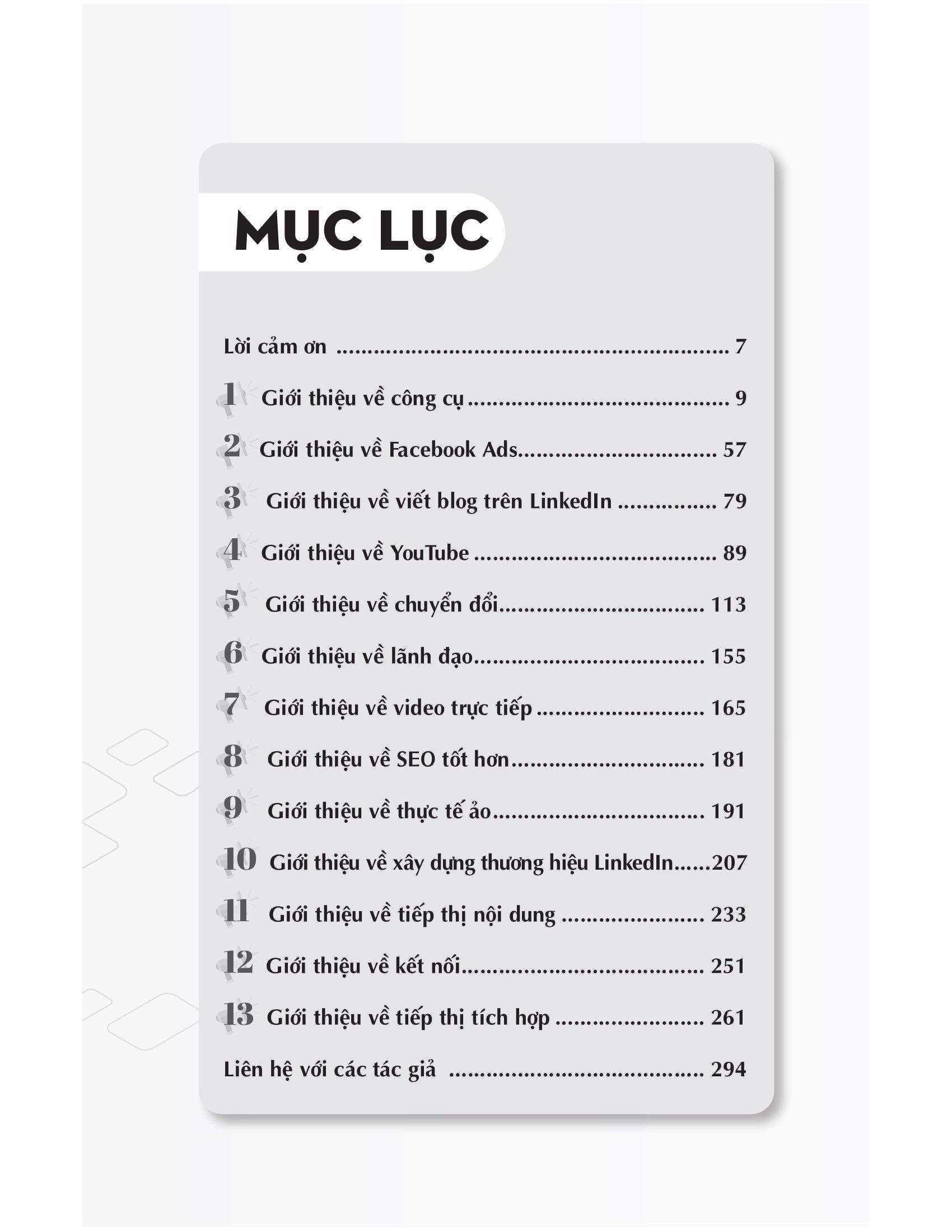 Đây chính xác là cuốn “bí kíp” hữu ích bao gồm những hướng dẫn cách tối ưu hóa các công cụ truyền thông như ok Ads, Youtube, LinkedIn, VR,... để xây dựng thương hiệu doanh nghiệp, tạo dựng thương hiệu cá nhân, nâng tầm ảnh hưởng và độ phổ biến của thương hiệu, từ đó tạo dựng một nền tảng vững chắc nhằm nâng cao doanh số bán hàng. Khi đã nắm chắc tất cả các công cụ cần thiết đó, doanh nghiệp sẽ biết cách xây dựng một chiến lược marketing nhất quán, theo sát xu hướng thị trường, nắm được thị hiếu của khách hàng và biết cách phối kết hợp các công cụ marketing hợp lý để thúc đẩy sự phát triển, nâng tầm hoạt động kinh doanh lên một vị thế mới.