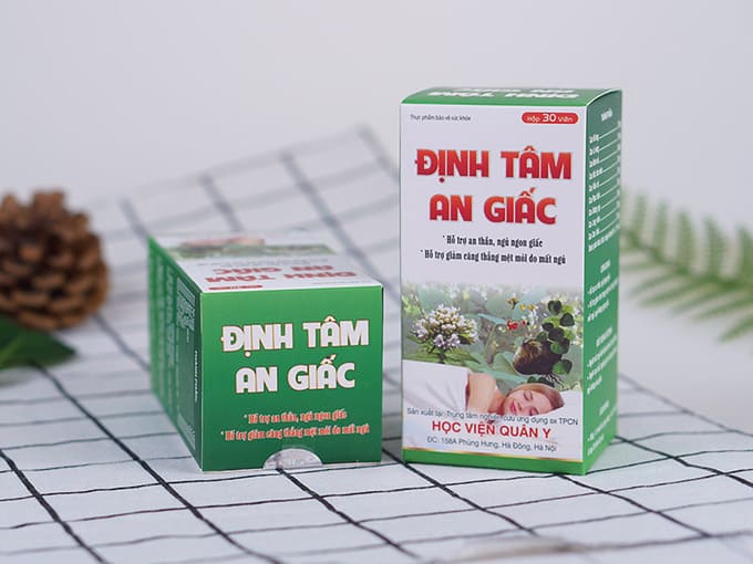 - Thành phần khác (talc, magie stearat) vừa đủ 1 viên. Công dụng của Định Tâm An Giấc Học Viện Quân Y Được nghiên cứu và điều chế từ các dược liệu tự nhiên, nên sản phẩm có công dụng vượt trội đã được kiểm chứng lâm sàng như: