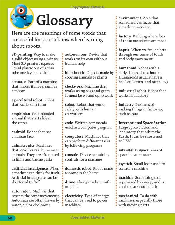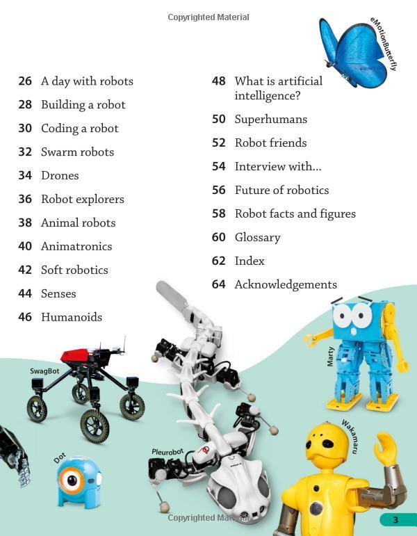 Find out why and how robots are made, how they help humans and what they will do in the future. DKfindout! Robots is packed with up-to-date information, fun quizzes and incredible images of robots. Written by an expert in the field, this book is a great addition to any home library, school's robotics club book list, and classroom's STEAM (Science, Technology, Engineering, Arts, and Mathematics) library