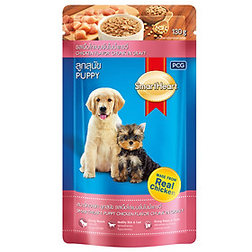 Đồ Ăn Cho Chó Nhỏ Vị Thịt Gà Miếng Nấu Xốt SmartHeart (Gói 130g) có mùi vị thơm ngon hấp dẫn, kích thích vị giác giúp cún cưng nhà bạn ăn nhiều và ngon miệng hơn.