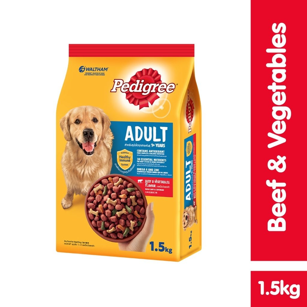 Thức Ăn Cho Chó Vị Thịt Bò Và Các Loại Rau Củ Pedigree Dạng Túi 1.5kg chứa nhiều chất dinh dưỡng như chất béo, vitamin… cùng sự thơm ngon của vị bò, sản phẩm chắc chắn sẽ khiến những chú chó cưng của bạn thích thú, đồng thời giúp bạn chăm sóc chúng một cách dễ dàng hơn với những chất dinh dưỡng mà sản phẩm mang lại.