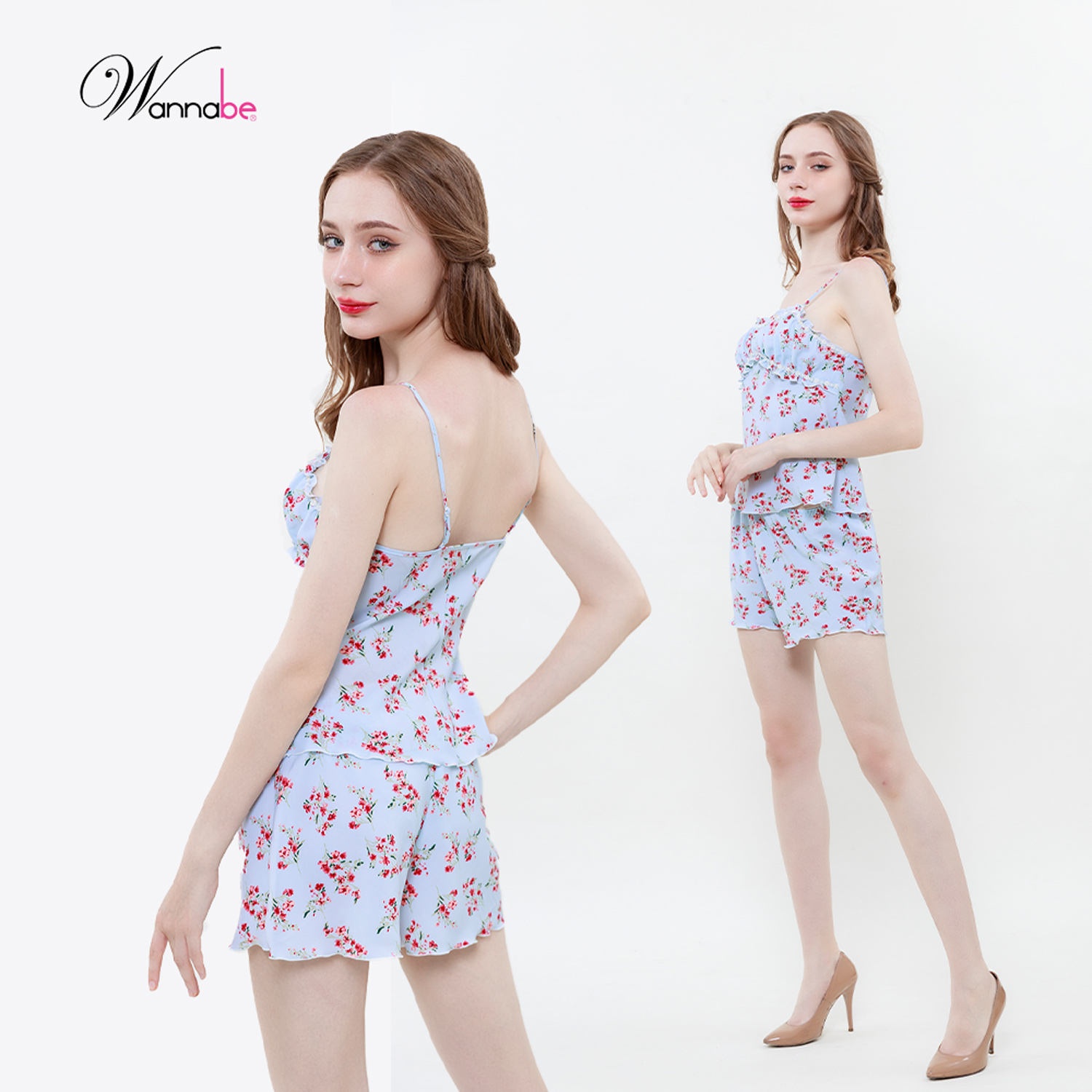 Bộ short nữ WANNABE BSS03 bộ sọt gồm quần đùi áo 2 dây lưng kiểu ba lỗ cho bạn gái thêm năng động Đồ bộ mặc nhà Wannabe BSS03 thiêt kế kiểu dáng hai dây