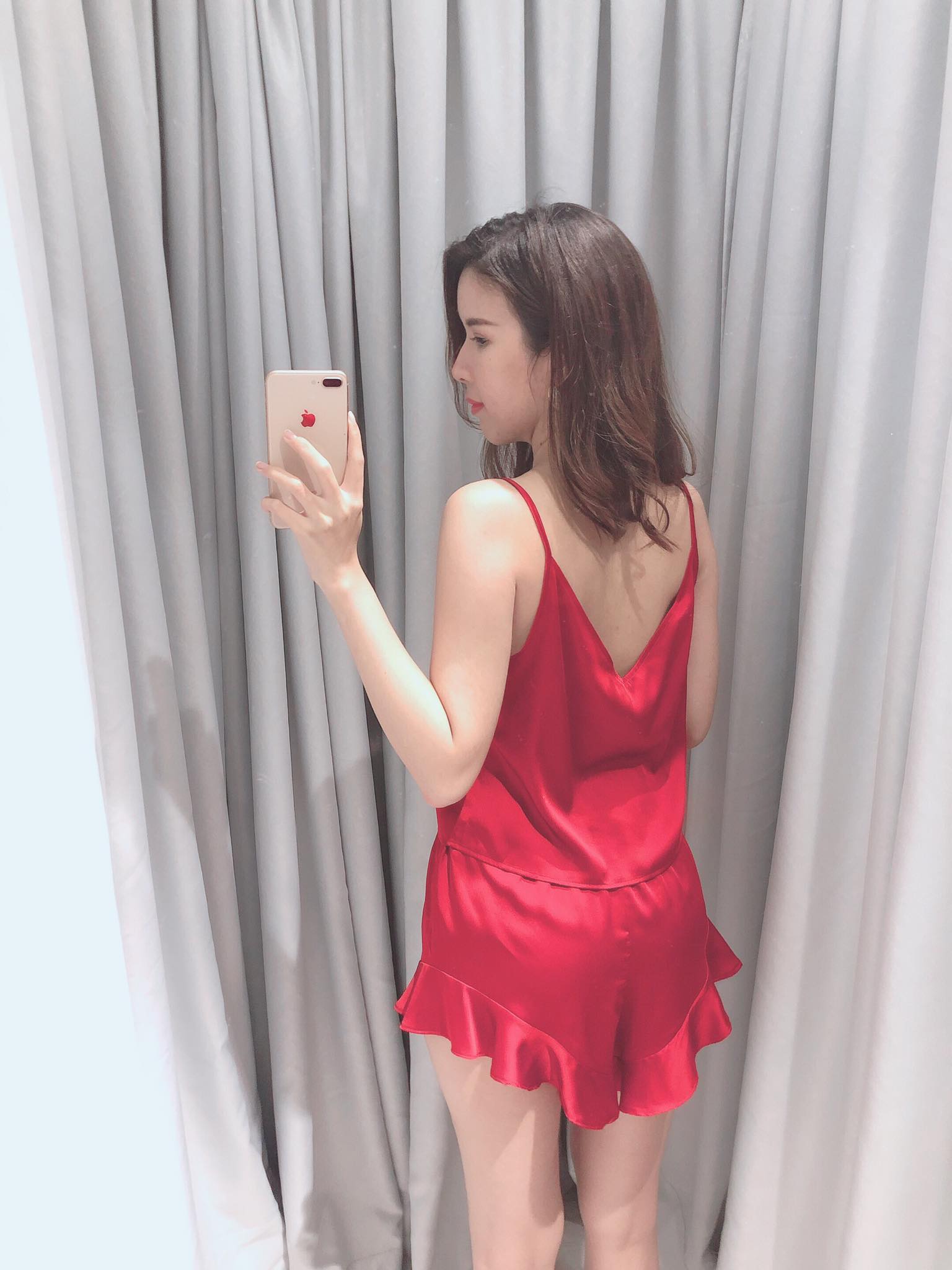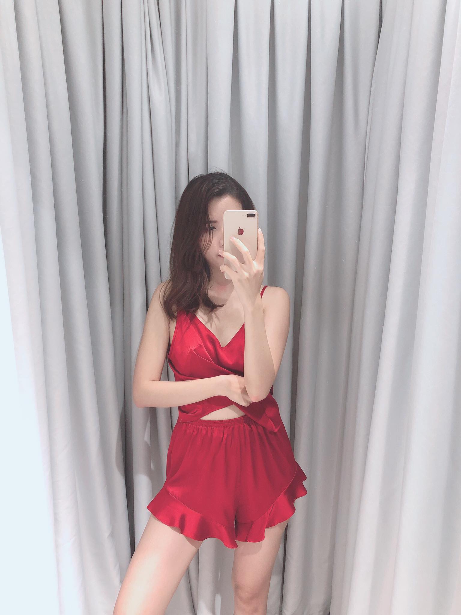 Tên sản phẩm : Đồ Bộ Ngủ Lụa 2 Dây gợi Cảm -Màu đỏ đô