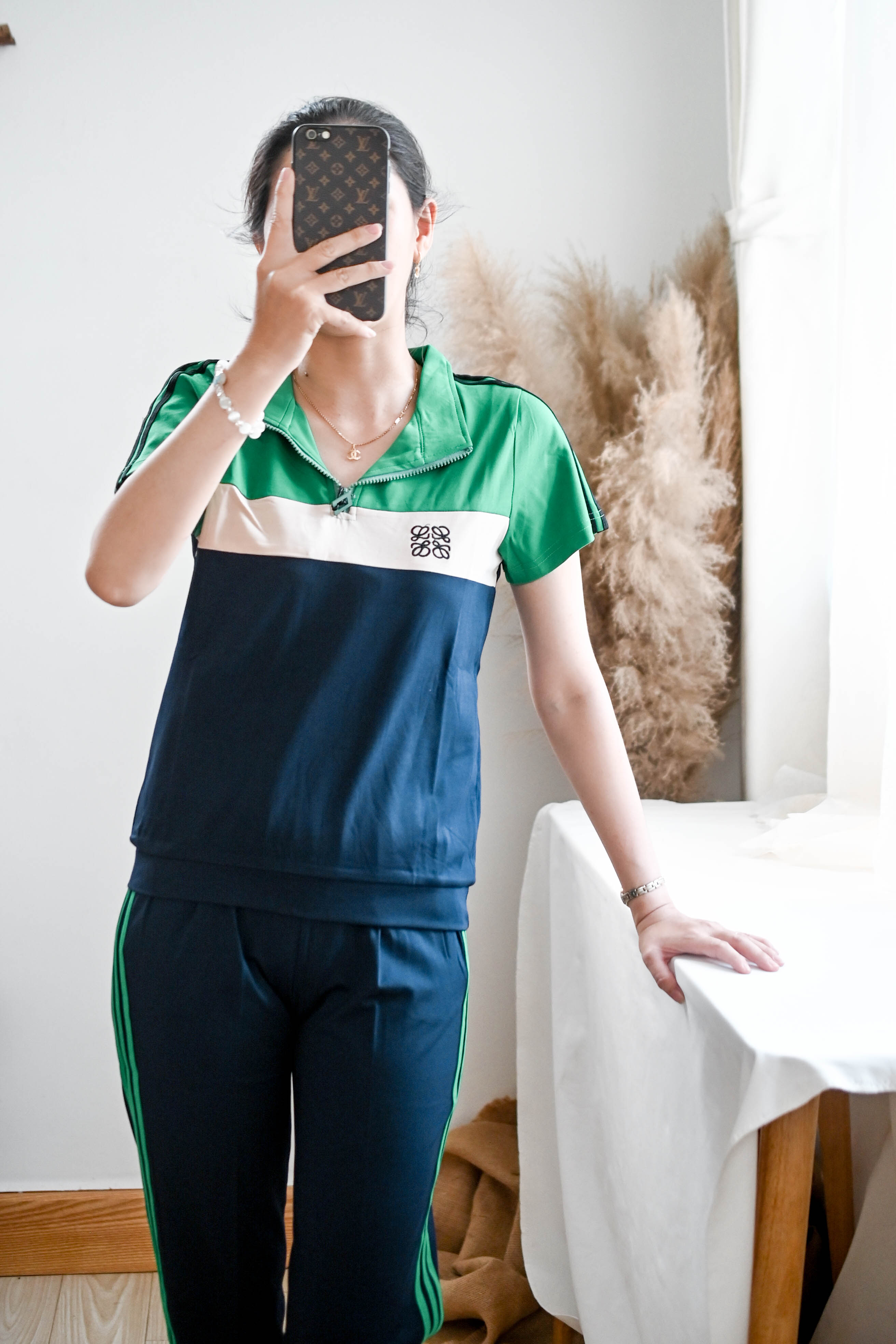 Set bộ thể thao tay ngắn quần dài với dáng áo chui cổ bẻ, phối màu đơn giản làm tăng thêm phần năng động cho set đồ Chất vải mềm mịn thoáng mát, thấm hút