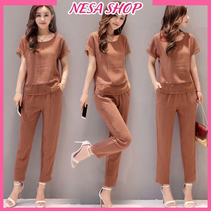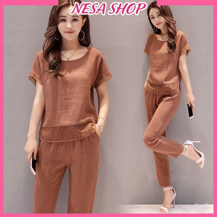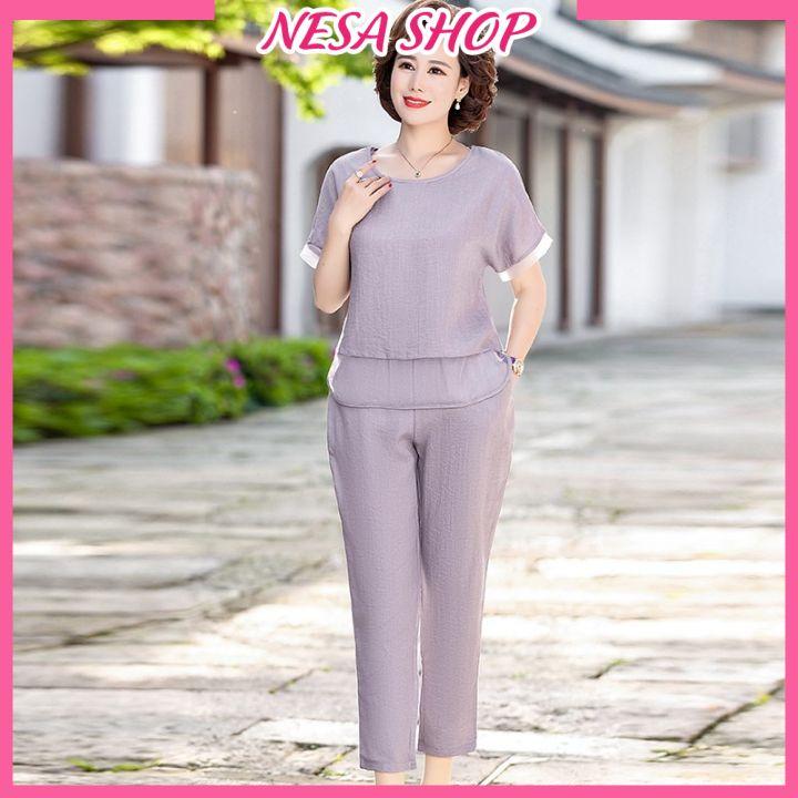 ✨Đồ bộ trung niên tay ngắn cho Bà cho Mẹ, chất liệu Đũi mát mẻ, thấm hút mồ hôi, đồ bộ mặc nhà NeSa Shop ĐBH.27