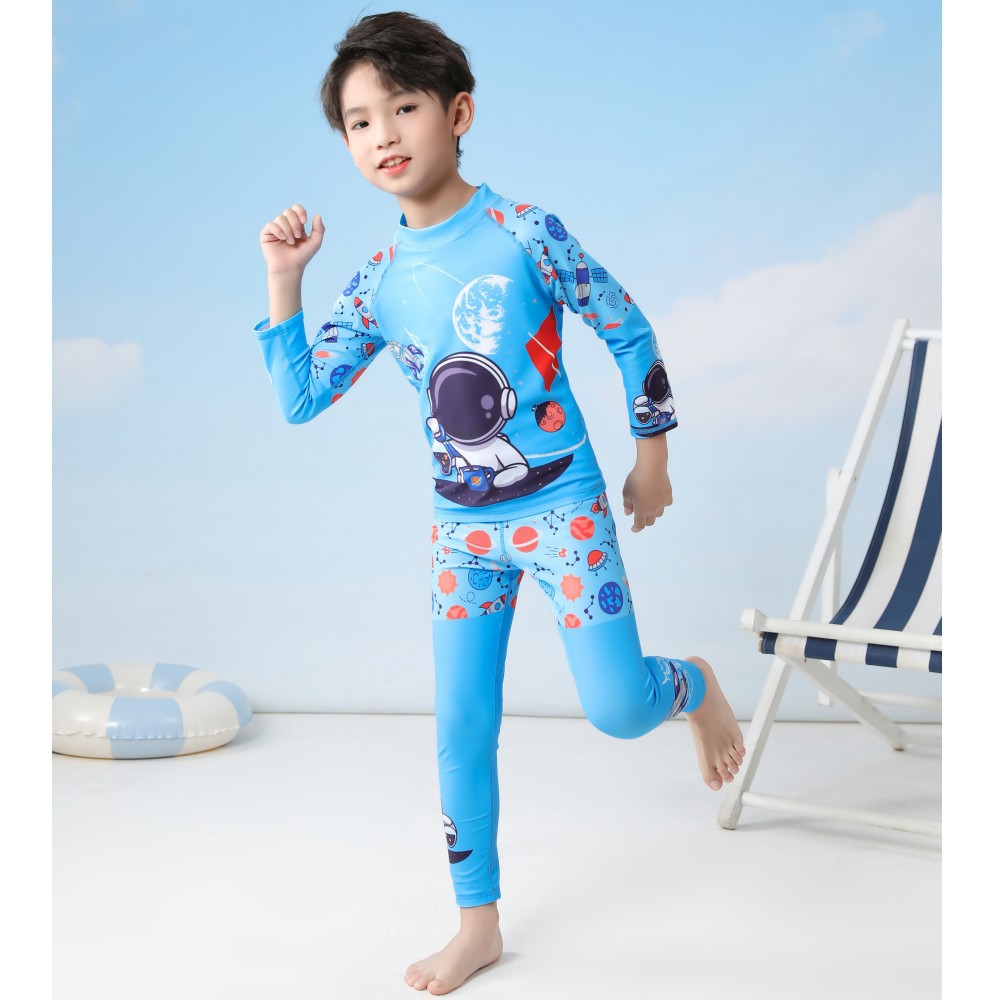 Đồ bơi bé trai họa tiết khoa học vũ trụ tay dài quần dài chống nắng cho bé Đồ bơi bé trai rời quần dài áo dài tay chống nắng, chất vải mềm mại, họa