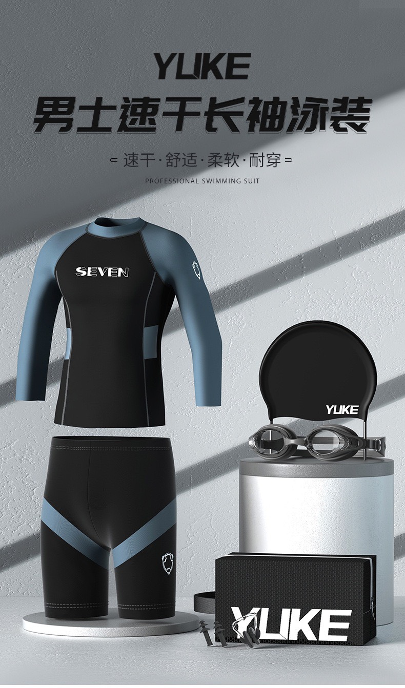 - Đồ bơi tay dài nam chống nắng, phối họa tiết cổ và tay áo rất cá tính & thời trang. - Set đồ gồm: 01 Áo bơi tay dài + 01 Quần sooc đùi