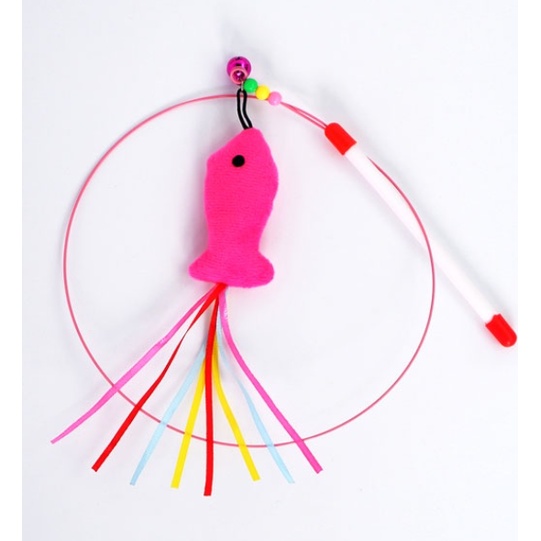 Cần câu mèo dây thép hình con cá đồ chơi bằng bông nỉ và lông vũ Đồ chơi thư giãn cho boss, kiêm tập thể dục tại nhà cho boss lẫn sen, kiêm luôn tập