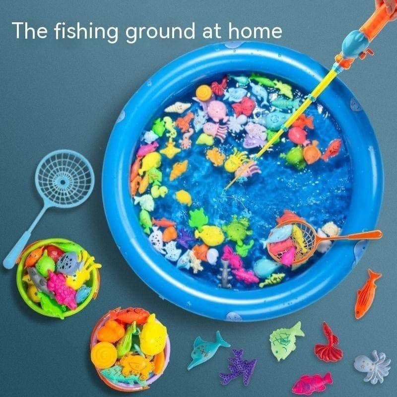 Bộ Đồ Chơi Câu Cá Cho Bé gồm bể phao, các sinh vật biển, cần câu để bé có thể trải nghiệm trò chơi câu cá thú vị ngay tại nhà. Các chú cá được