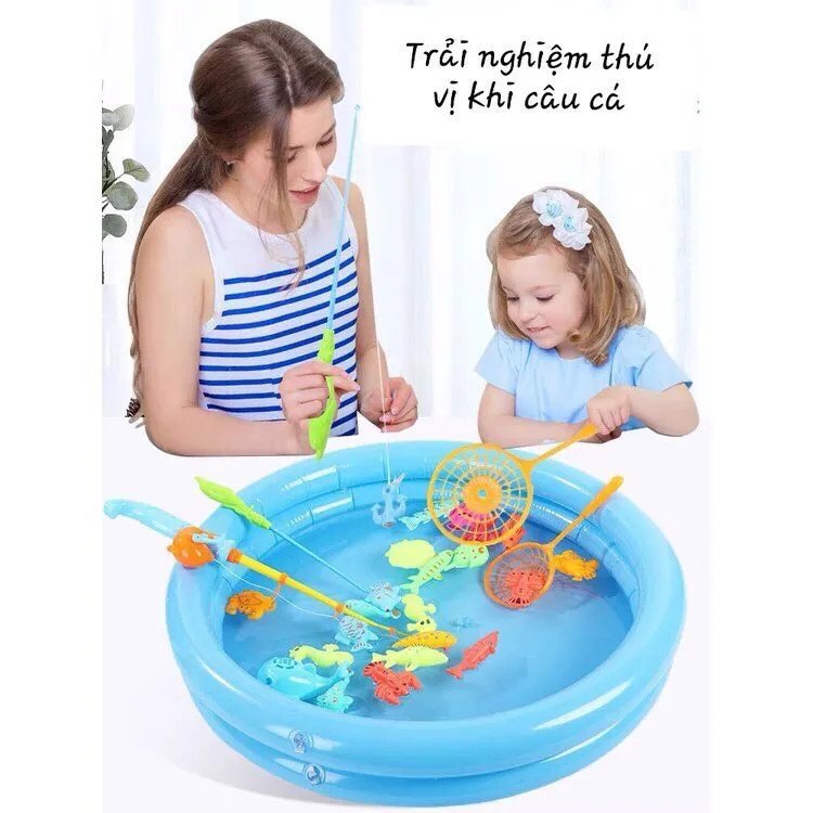 - Cho con trẻ tuổi thơ vui vẻ tránh xa thiết bị điện tử máy tính điện thoạ MÔ TẢ SẢN PHẨM: 1 Bộ câu cá bao gồm: 34 sinh vật biển gắn vít, 2 cần câu rút gắn nam châm, 2 xô nhựa, 2 vợt, 1 bơm, 1 bể phao cỡ lớn 60cm.