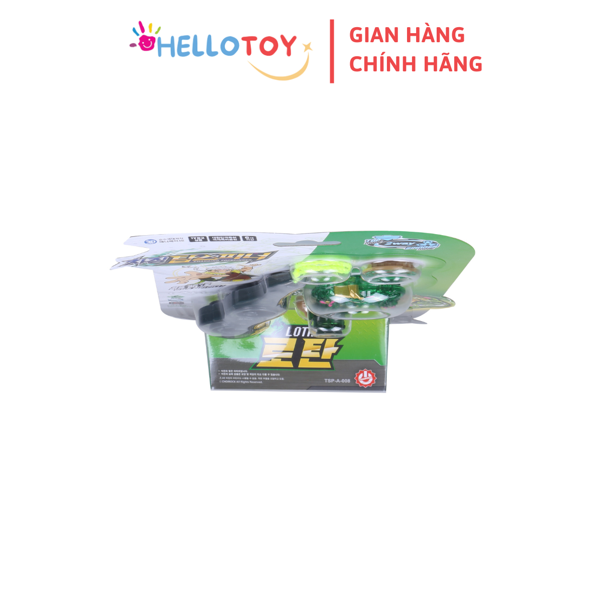 Mua tại Tiktok1.Tên sản phẩm: Đồ chơi Trẻ em 2.Tên hàng hóa: [CHARGING TOP SPINNER] CON QUAY LOTAN 3.Mã hàng hóa: TSP-A-008 4.Thành phần: Nhựa ABS 5.Thông số kỹ thuật: 16039230 (mm), 80 g, không dùng pin 6.Xuất xứ: Trung Quốc 7. Nhập khẩu từ: Hàn Quốc 8.Năm sản xuất: 3/2023 9.Tuổi sử dụng: Từ 06 tuổi trở lên 10.Hướng dẫn sử dụng: chơi và trưng bày 11.Cảnh báo: Không thích hợp cho trẻ em dưới 3 tuổi, có các chi tiết nhỏ! 12.Nhà nhập khẩu và PP độc quyền tại Việt Nam: CÔNG TY TNHH CHOIROCK VIETNAM