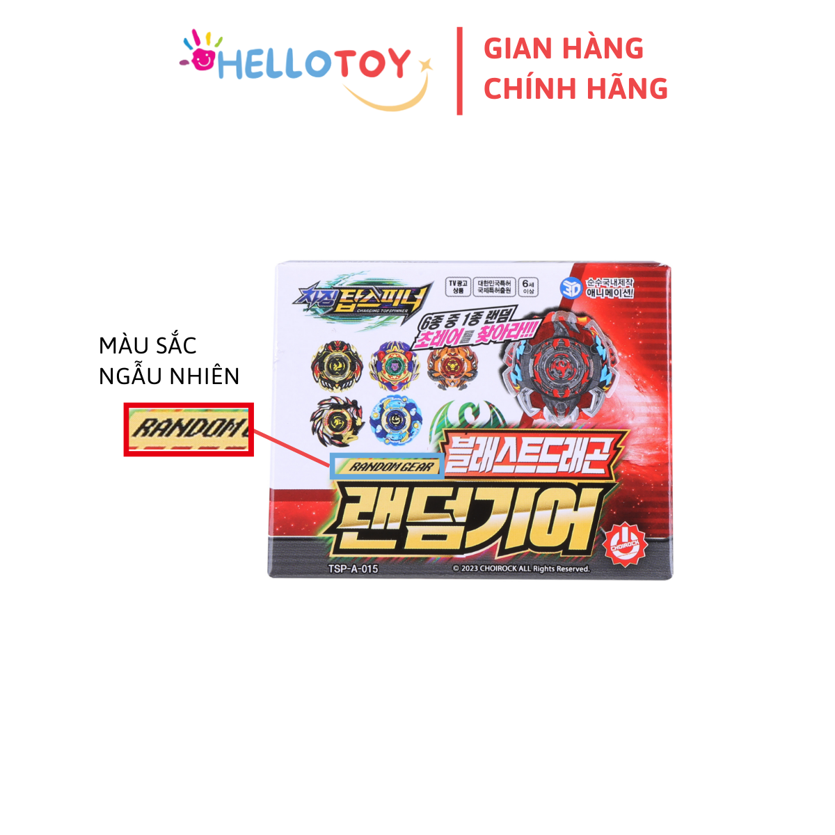 Mua tại Tiktok1.Tên sản phẩm: Đồ chơi Trẻ em 2.Tên hàng hóa: [CHARGING TOP SPINNER] CON QUAY RANDOM GEAR BLAST DRAGON 3.Mã hàng hóa: TSP-A-015 4.Thành phần: Nhựa ABS 5.Thông số kỹ thuật: 804060 (mm), 47 g, không dùng pin 6.Xuất xứ: Trung Quốc 7. Nhập khẩu từ: Hàn Quốc 8.Năm sản xuất: 6/2023 9.Tuổi sử dụng: Từ 06 tuổi trở lên 10.Hướng dẫn sử dụng: chơi và trưng bày 11.Cảnh báo: Không thích hợp cho trẻ em dưới 3 tuổi, có các chi tiết nhỏ! 12.Nhà nhập khẩu và PP độc quyền tại Việt Nam: CÔNG TY TNHH CHOIROCK VIETNAM