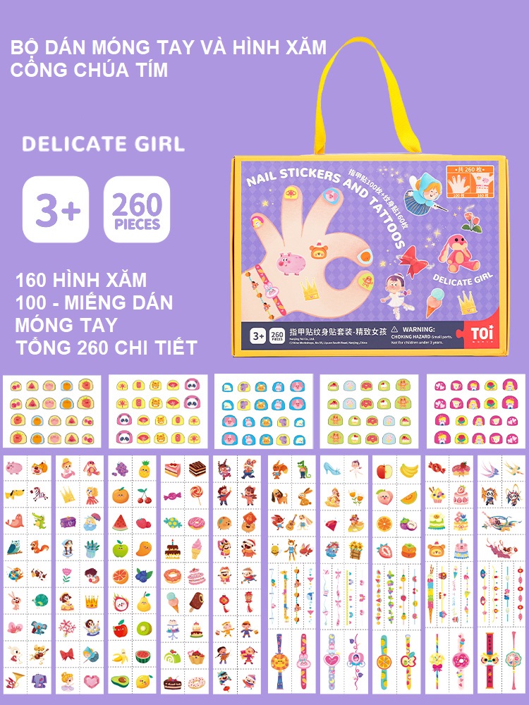 Đồ Chơi Dán Móng Tay và Hình Xăm - TOI Nail Stickers and Tattoos - Chất liệu: Giấy sticker - Độ tuổi thích hợp: 3+ - Thương hiệu: TOI, được nhập khẩu và phân phối
