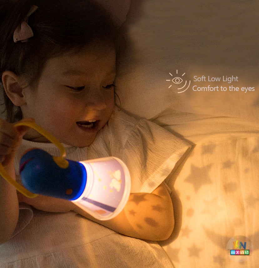 - Đèn ngủ: khi chiếu đèn lên trần nhà sẽ tạo ra một bầu trời đầy sao. Thú vị hơn nữa là trùm chăn, soi đèn xung quanh, bé sẽ cười rúc rích vì được ở trong thế giới của chính mình. Cùng với thiết kế có quai xách tiện lợi, các bé có thể mang đèn bên mình bất cứ khi nào và hóa thân thành những nhà thám hiểm nhí trên hành trình xua tan bóng tối. Đây là một món quà hết sức thú vị và diệu kỳ mà đảm bảo các bé sẽ thích mê. Combo 12 truyện cho bé thêm nhiều lựa chọn với nhiều câu chuyện hơn và thú vị hơn (đặc biệt kèm lời truyện tiếng việt)