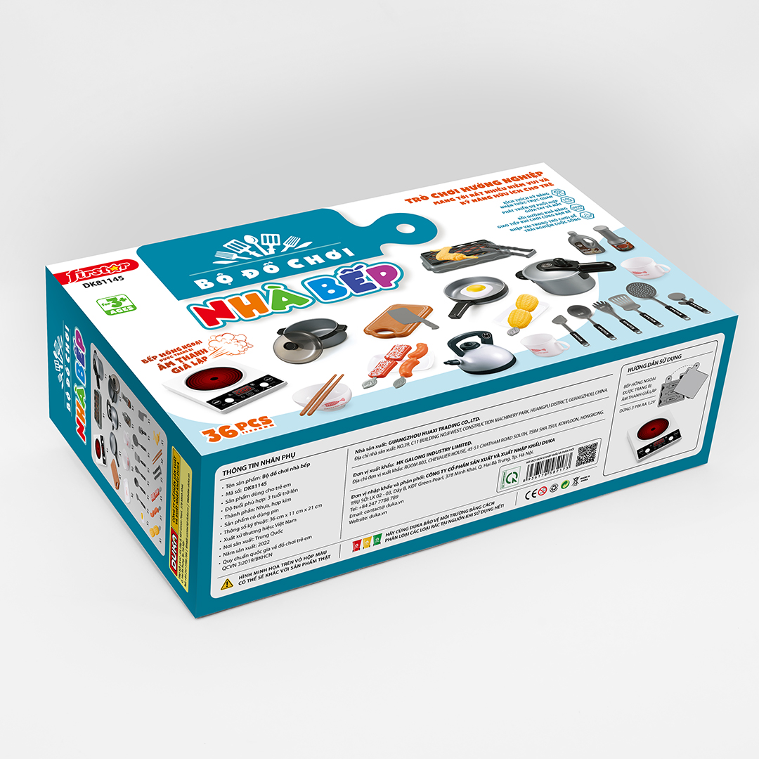 Mua tại TiktokBộ đồ chơi nhà bếp (màu xanh) DK 81145 Bộ đồ chơi nhà bếp là dòng sản phẩm đồ chơi trẻ em được thiết kế mô phỏng giống như một nhà bếp nấu ăn, các món ăn, các dụng cụ nhà bếp, hoặc các nguyên liệu nấu ăn,ới 36 chi tiết là những món đồ có nhiều màu sắc bắt mắt, kiểu dáng xinh xắn phù hợp cho cả bé trai và bé gái thỏa sức vui chơi, sáng tạo nhập vai thành người đầu bếp với các món ăn yêu thích hàng ngày. Khi chơi trò chơi sẽ giúp cho trẻ: