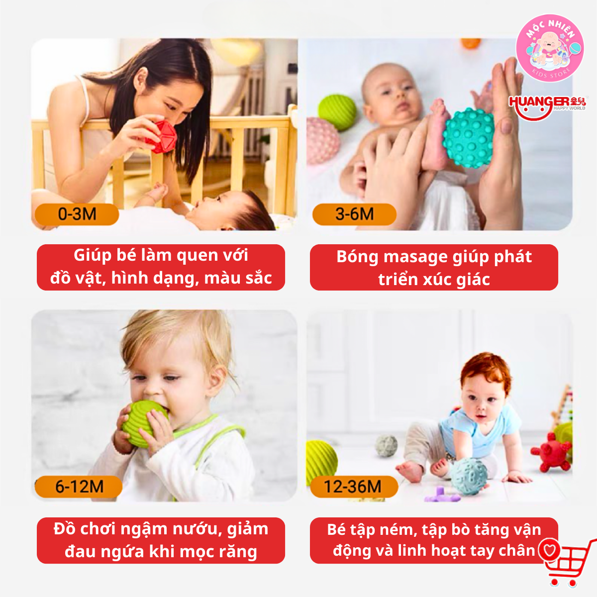 Đồ Chơi Giáo Dục Sớm HUANGER HE0207 Textured Balls - 6 Bóng Gai Cho Bé Từ 6 Tháng Tuổi · Đồ chơi giáo dục sớm cho bé · Thiết kế màu sắc sinh động thu hút
